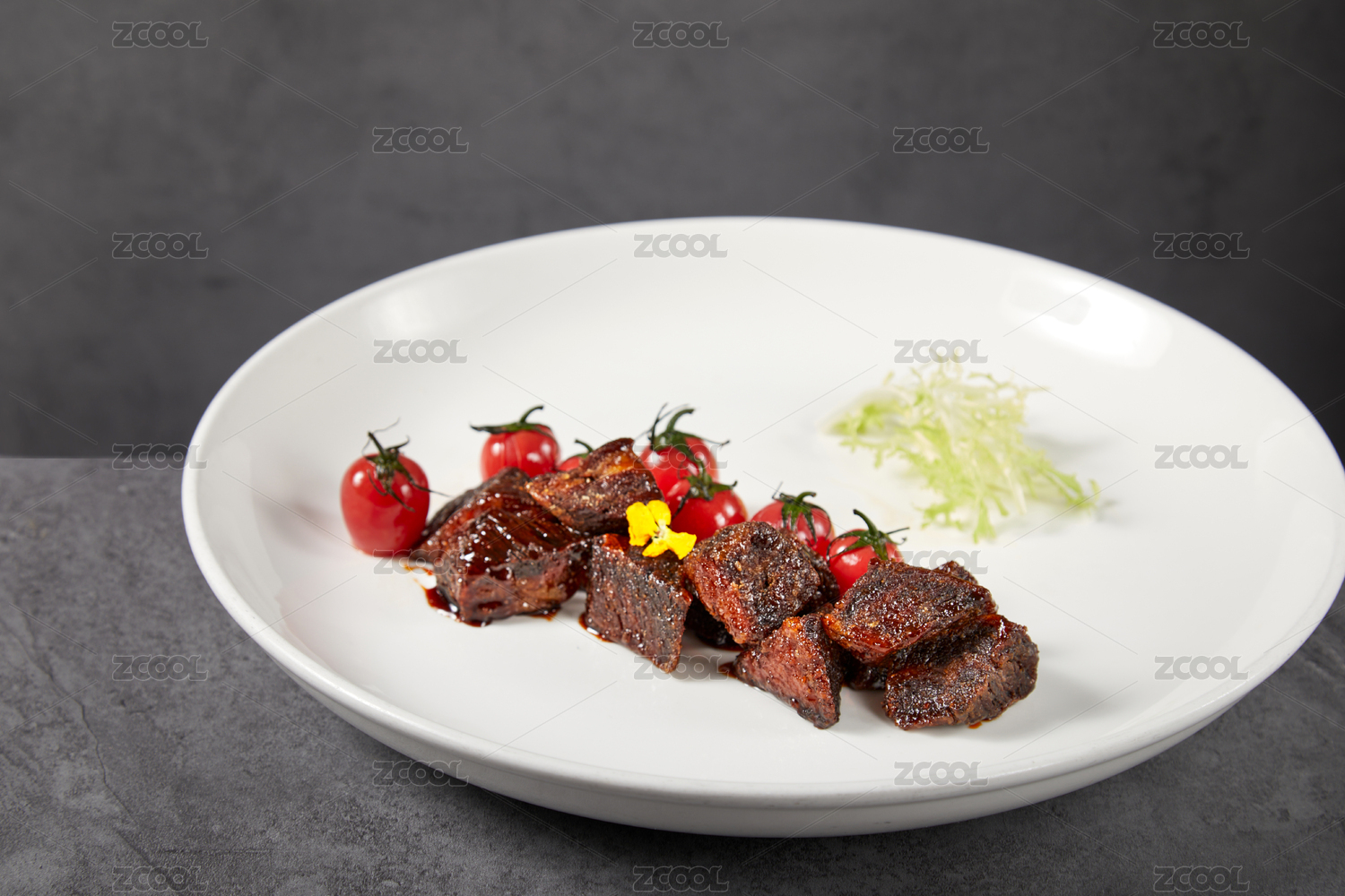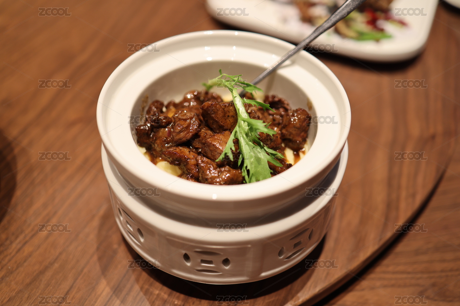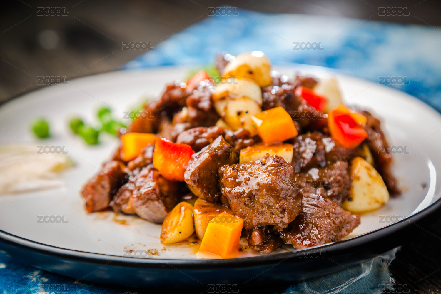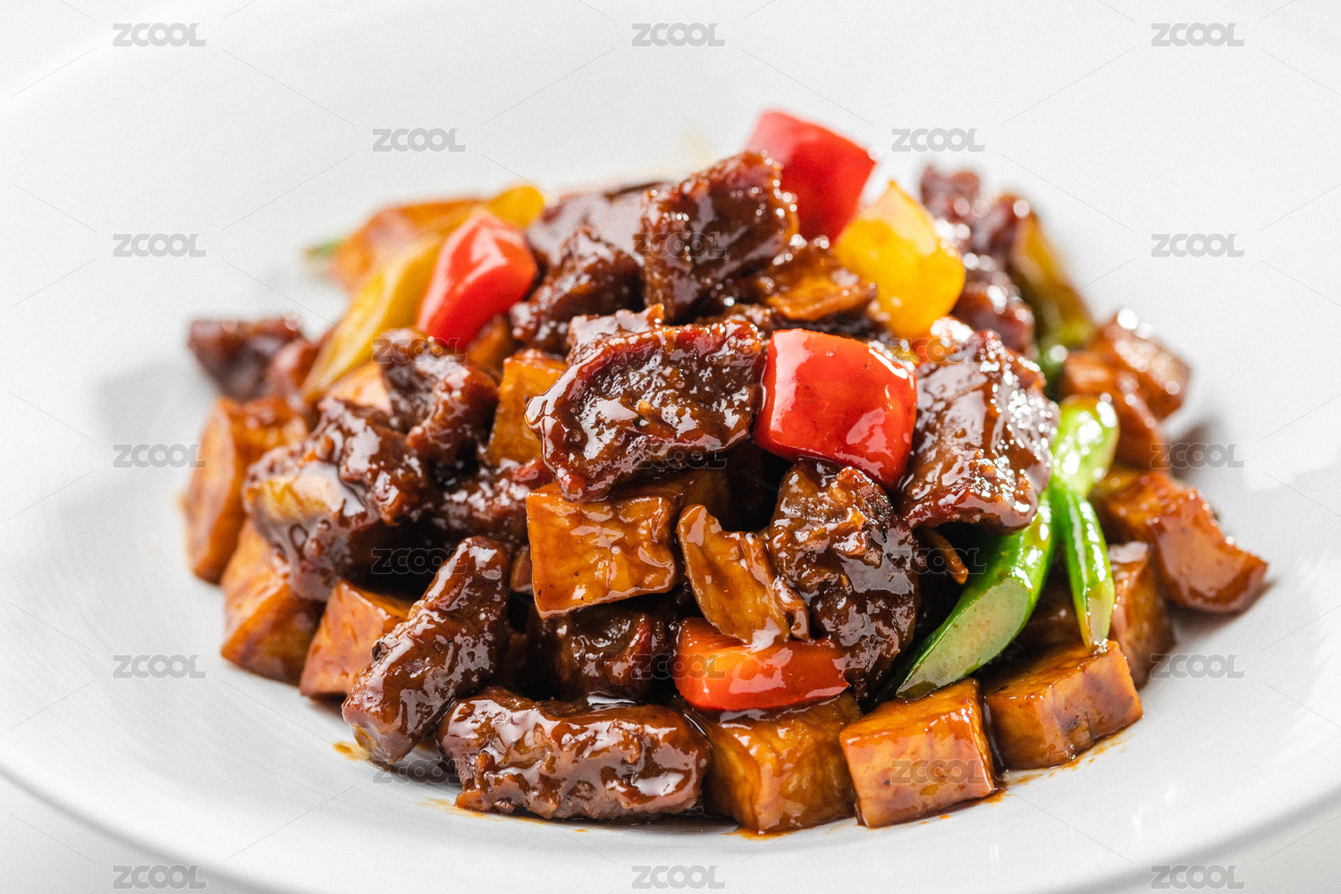 白盤(pán)子里有一份黑椒牛肉粒