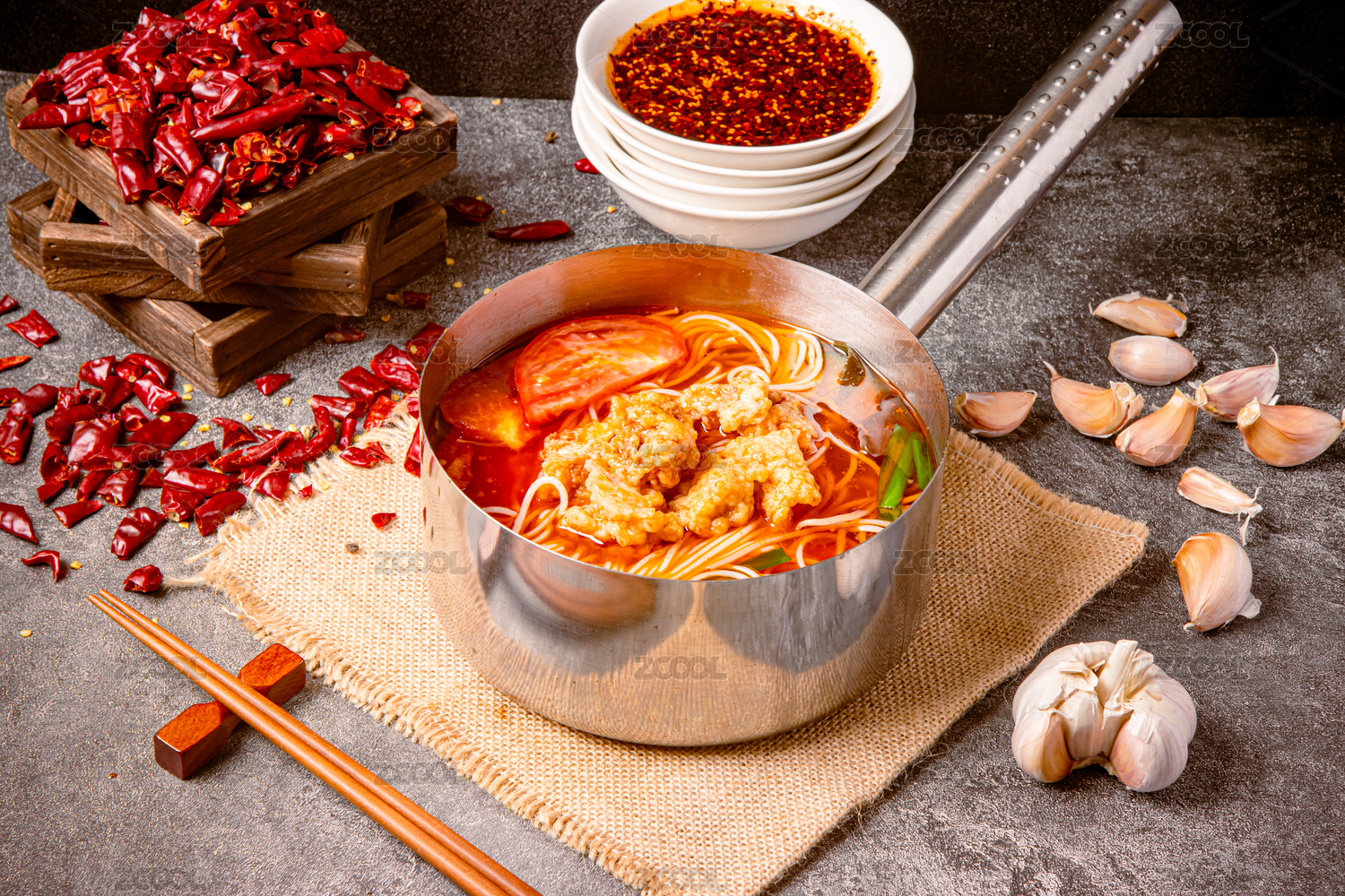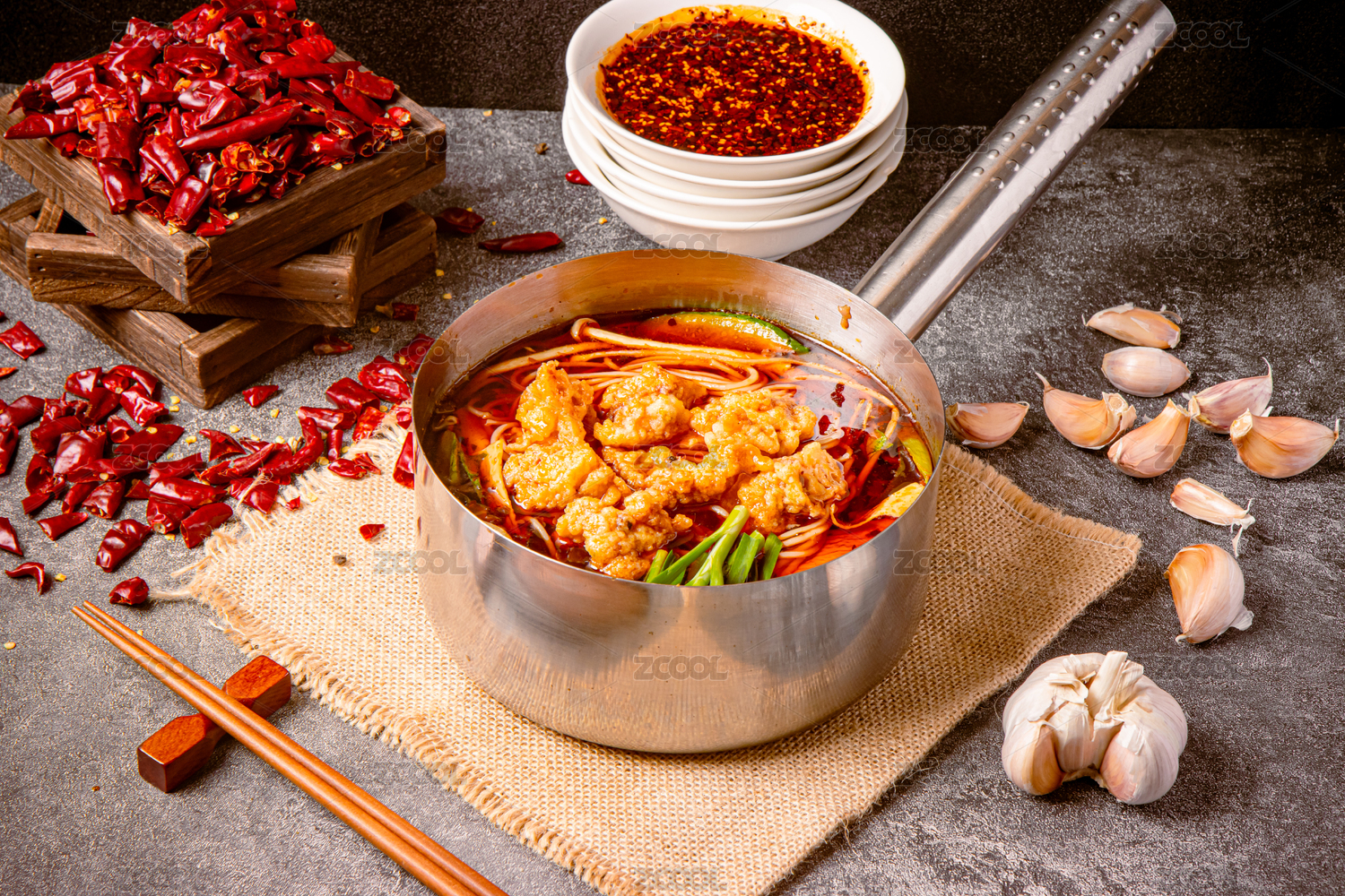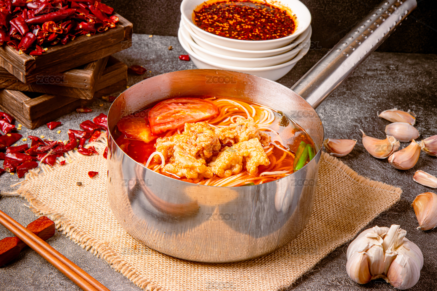 手柄鍋里的重慶麻辣小火鍋米線酥肉米線