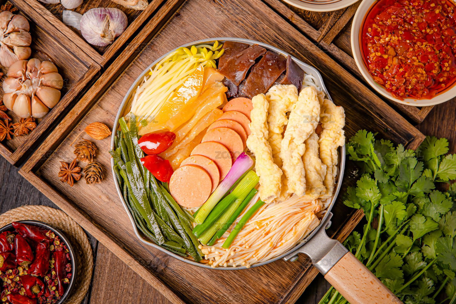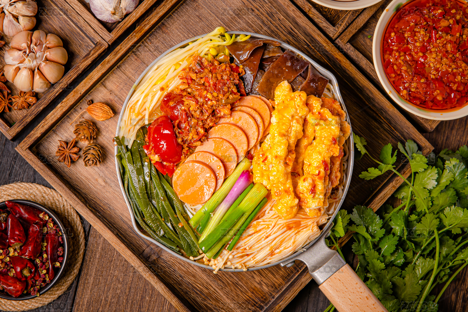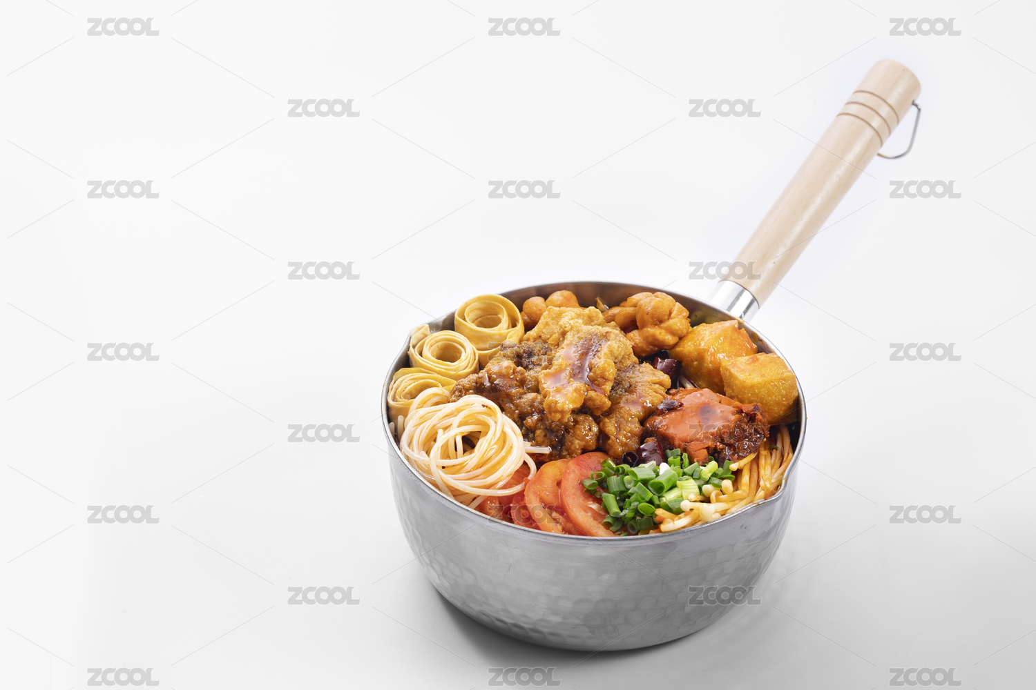 手柄鍋里的重慶麻辣小火鍋米線酥肉米線