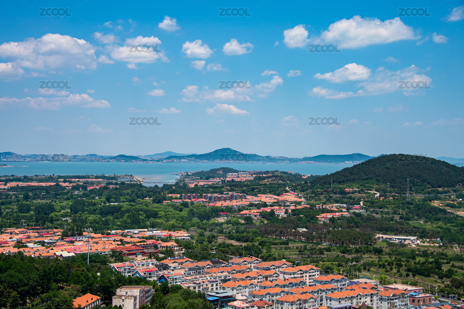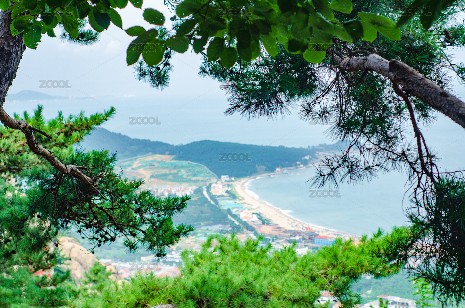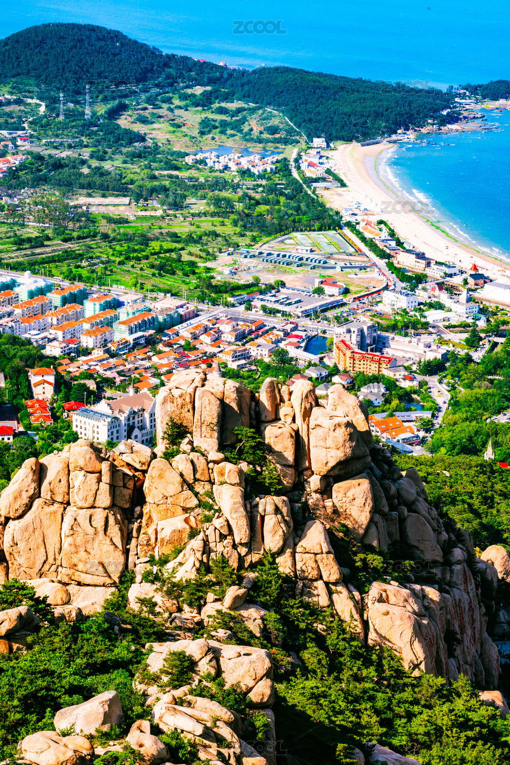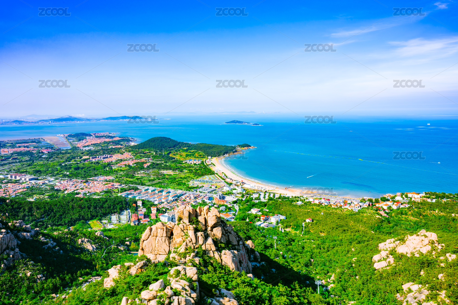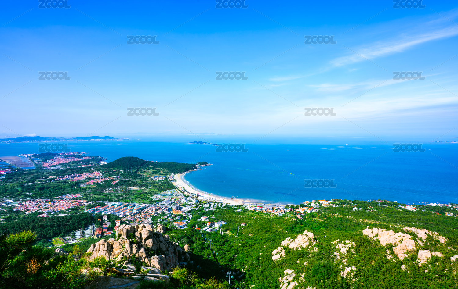 中國嶗山天苑登頂遠(yuǎn)眺仰口灣風(fēng)景