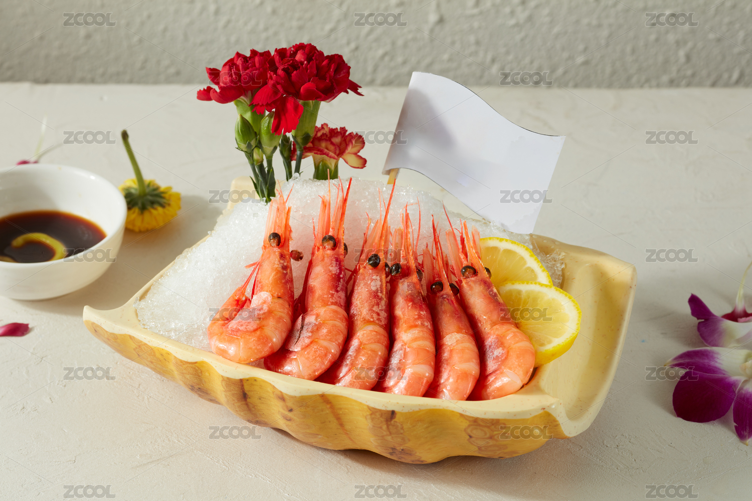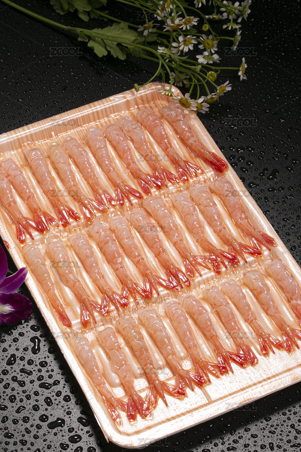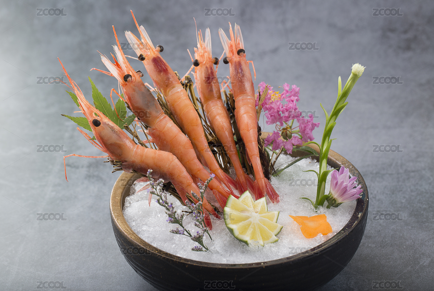 北極甜蝦刺身配蝦肉蔬菜春卷