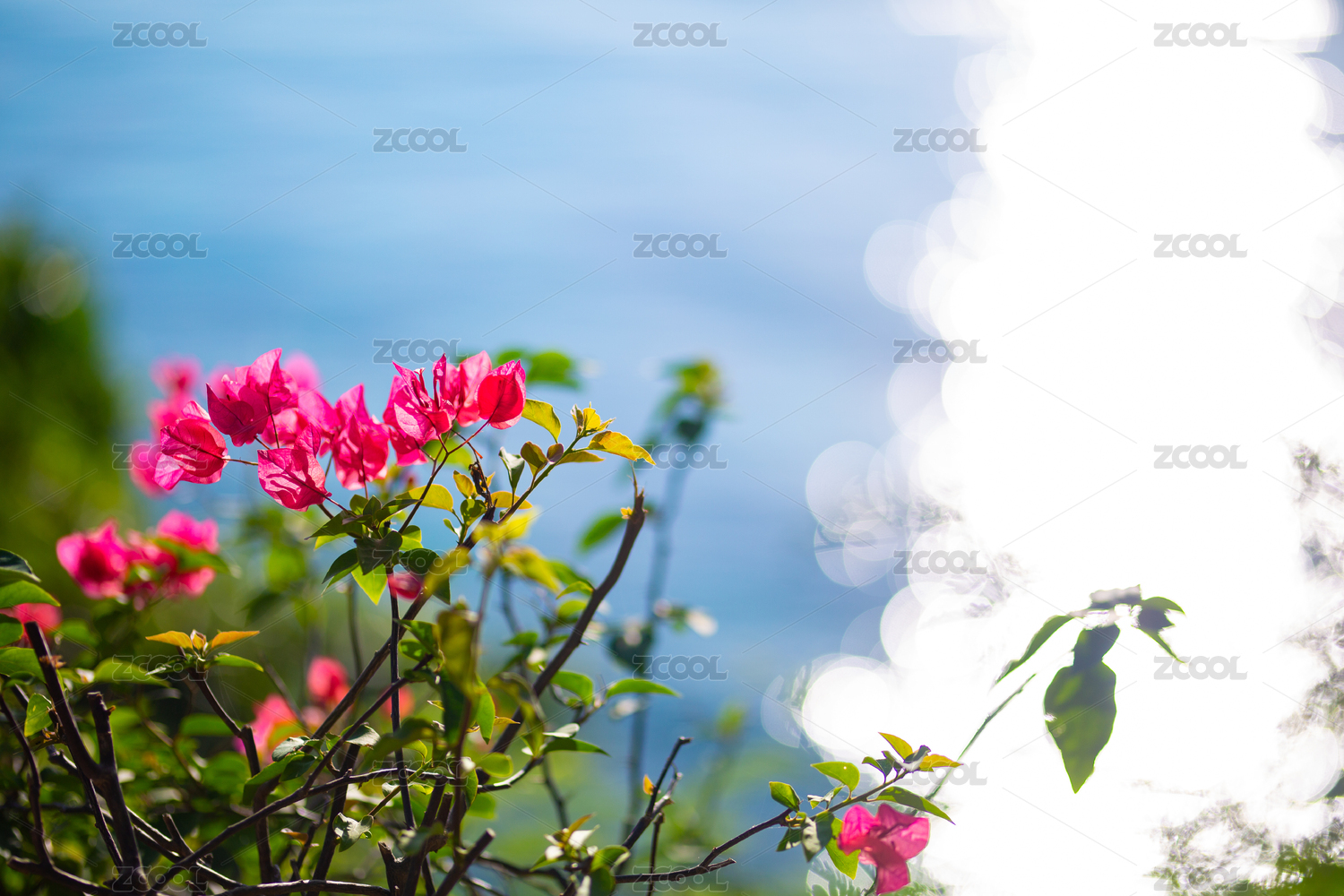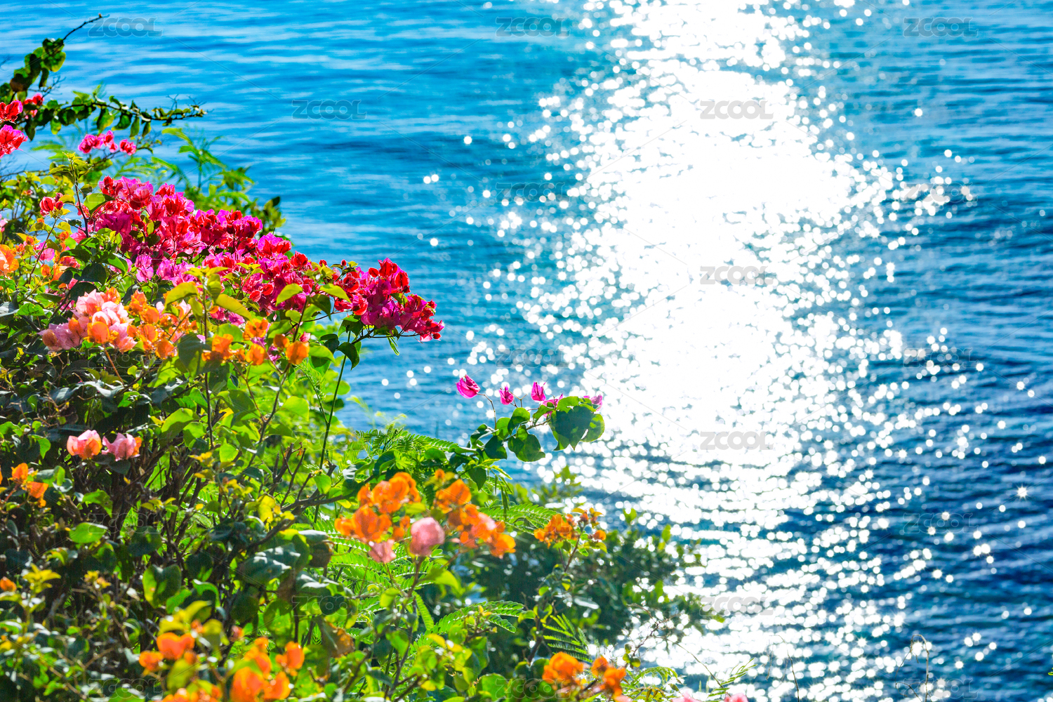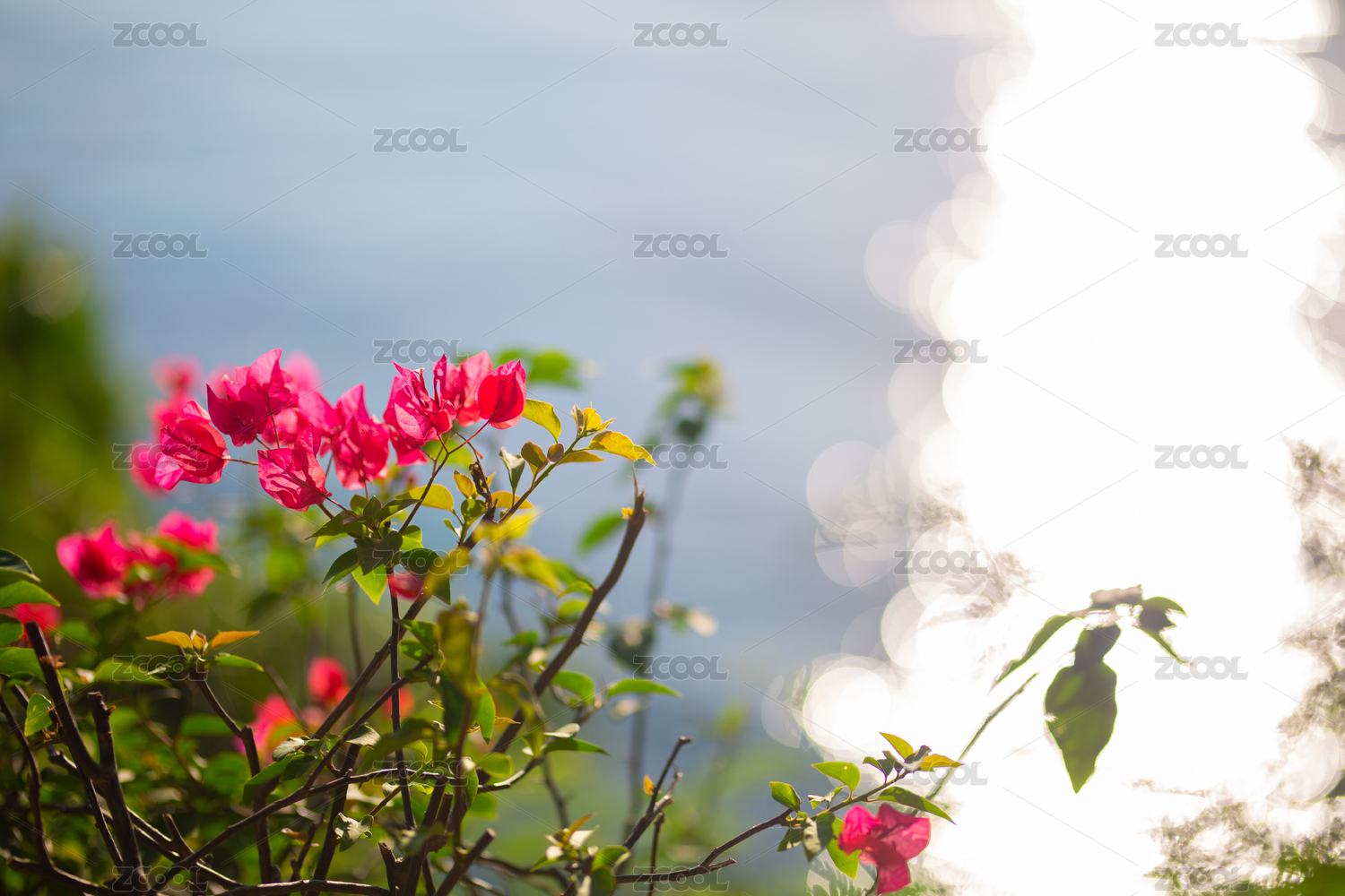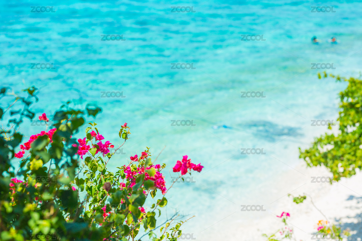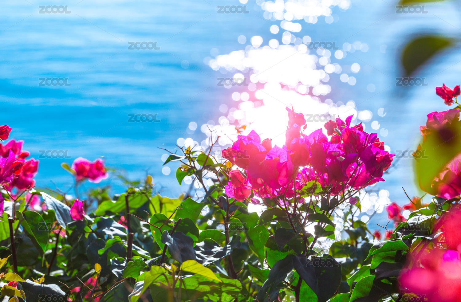 菲律賓蘇米龍島上的粉色花朵與大海融為一體