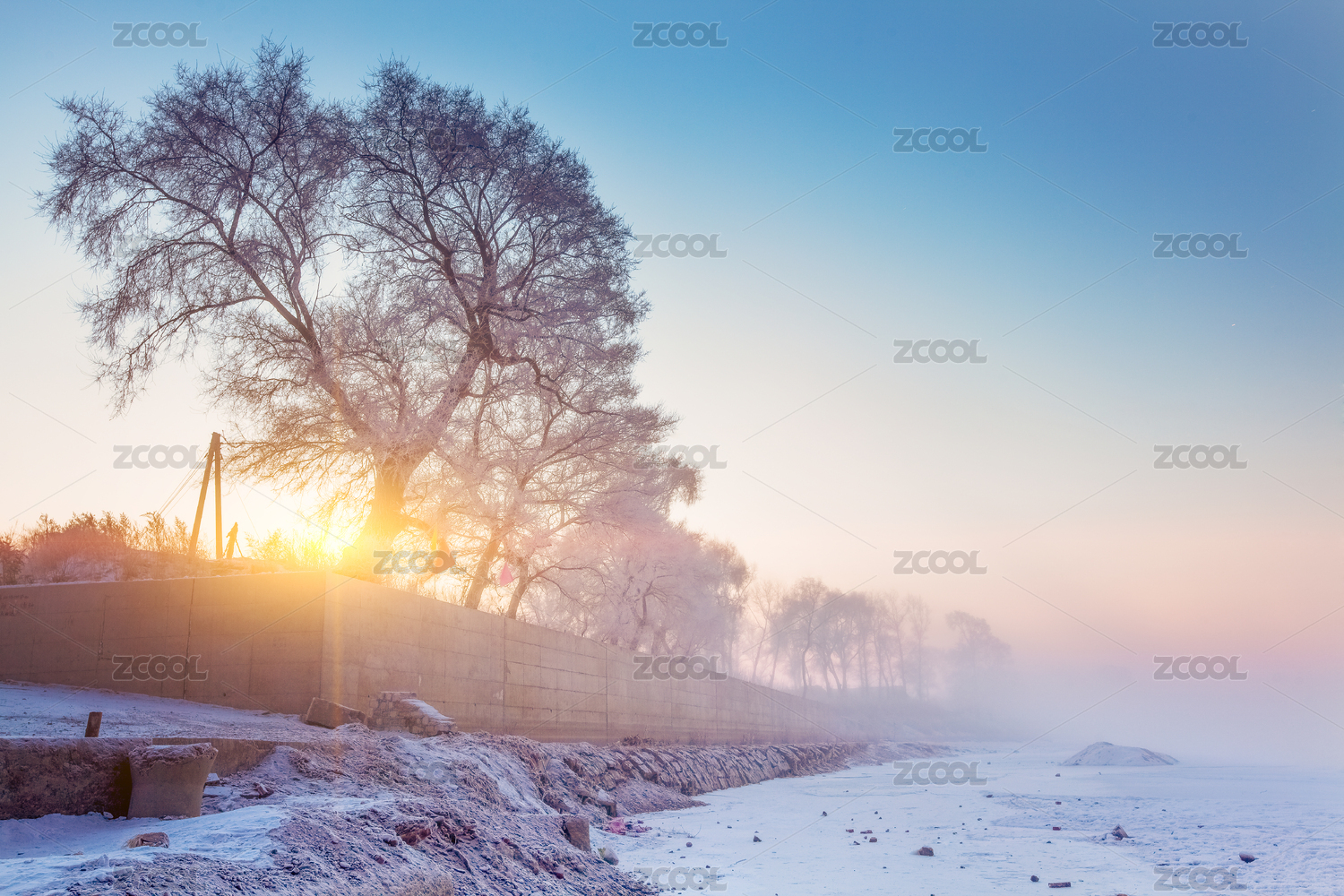 冰凍的中國(guó)東北松花江霧凇