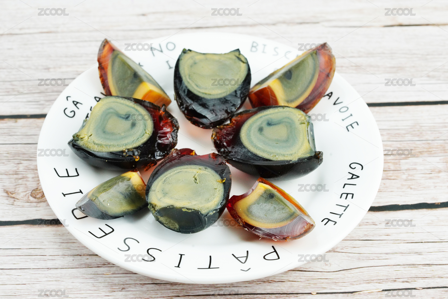被切開的中國(guó)松花皮蛋美食