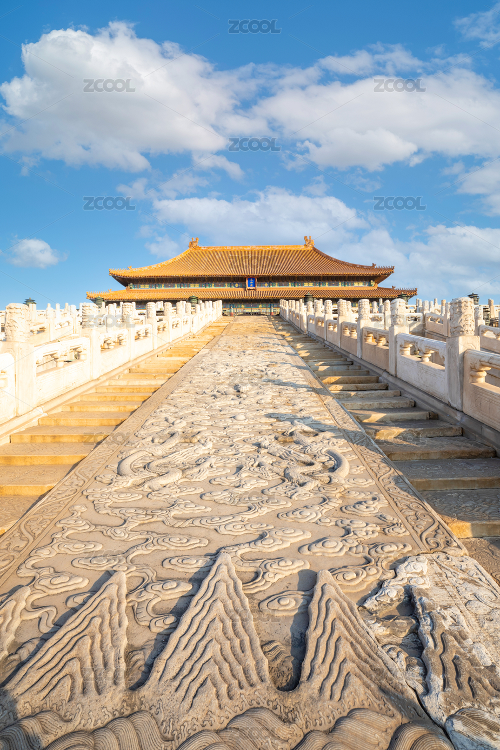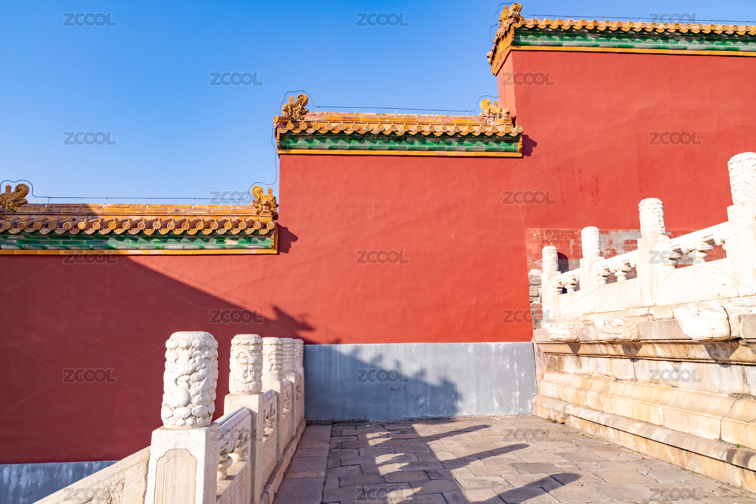 北京故宮博物院的紅色圍墻和漢白玉欄桿
