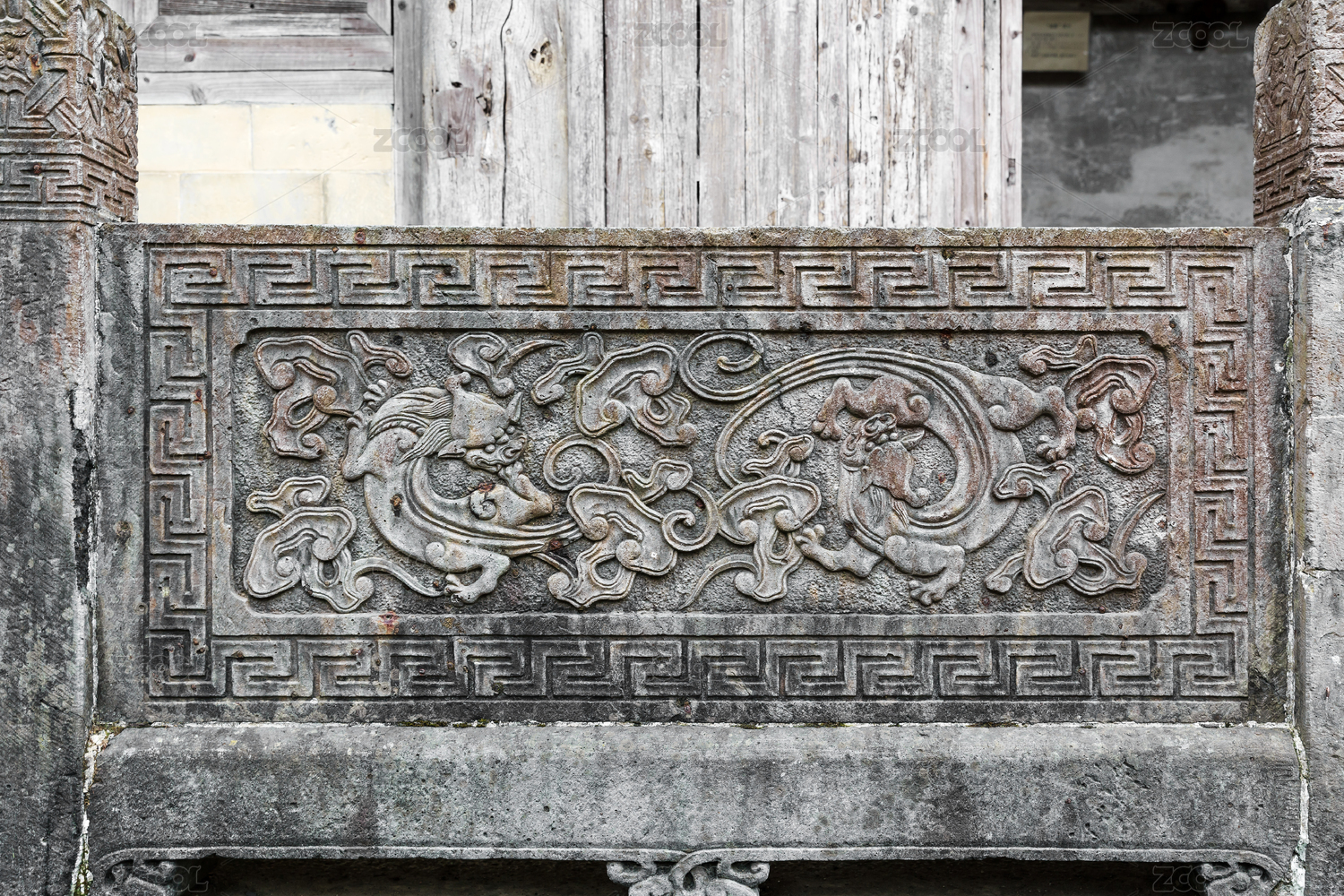 中國安徽省徽州區(qū)呈坎羅東舒祠石欄上龍紋石雕