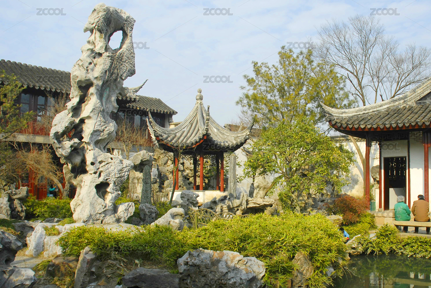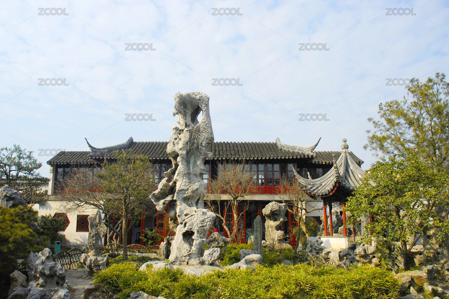 江蘇省著名蘇州園林之一留園的冠云峰和冠云亭