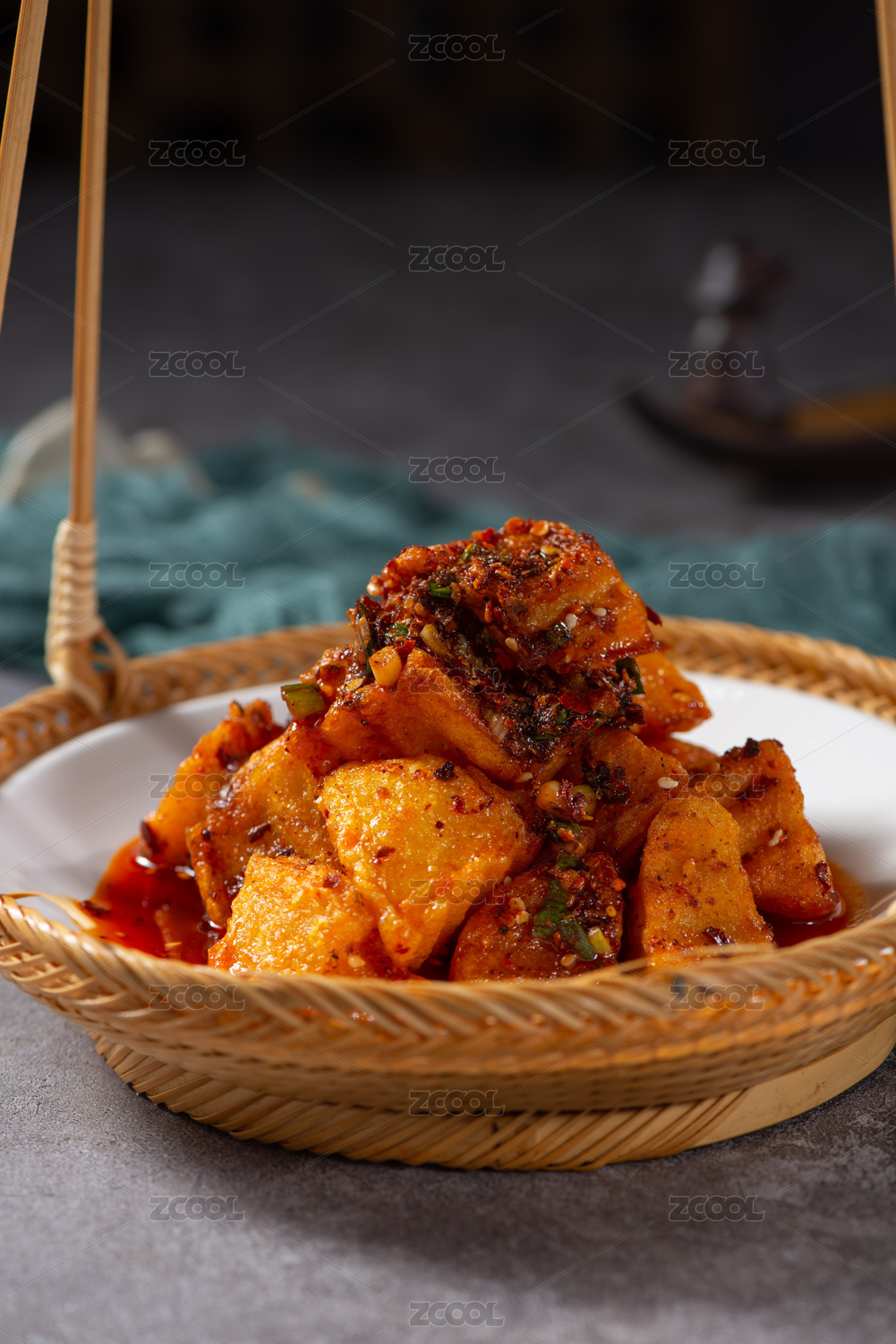 餐具里擺放的干鍋土豆片