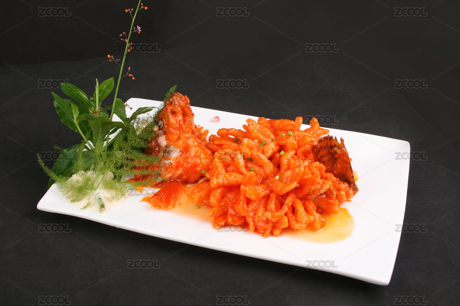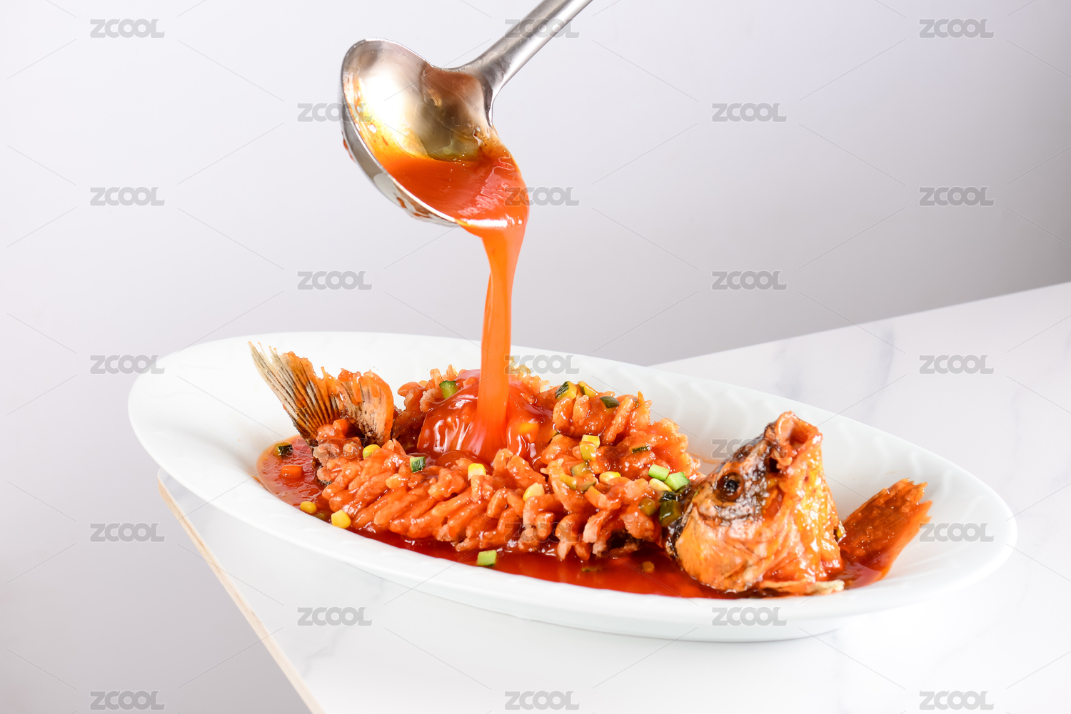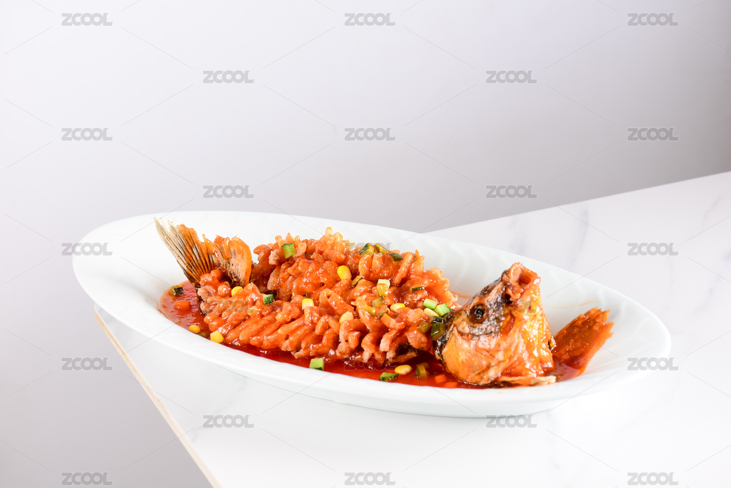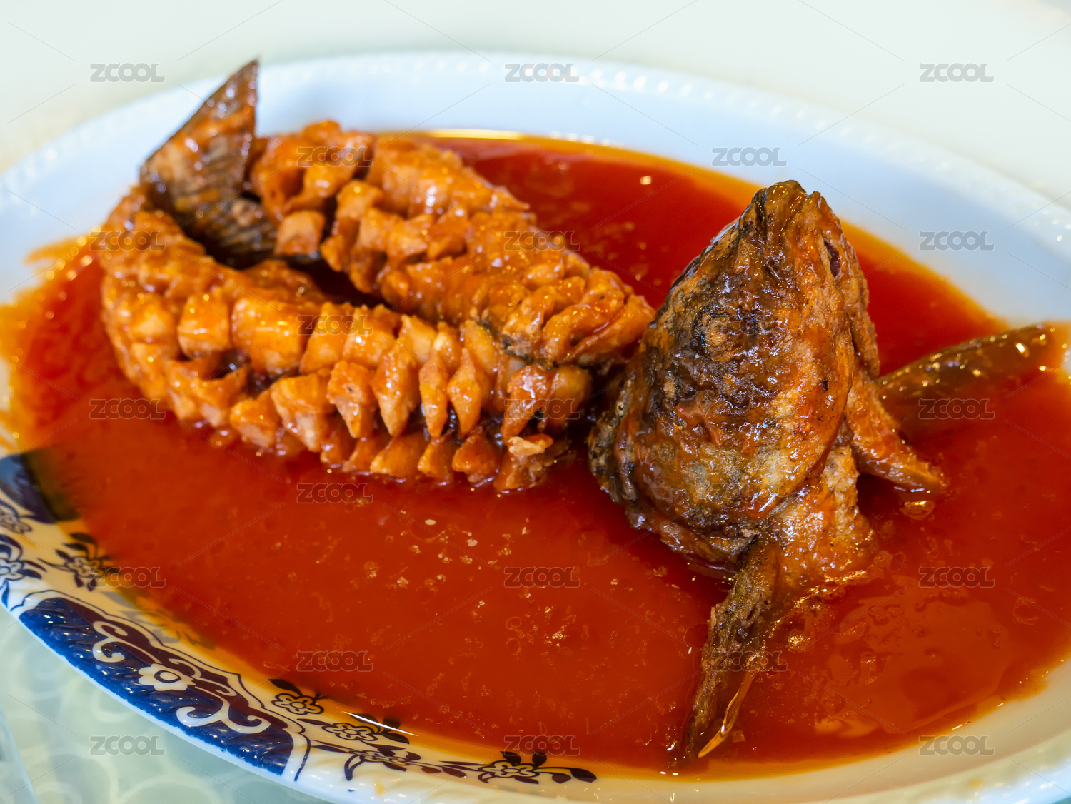 裝在盤(pán)子里澆上湯汁的紅燒松鼠魚(yú)