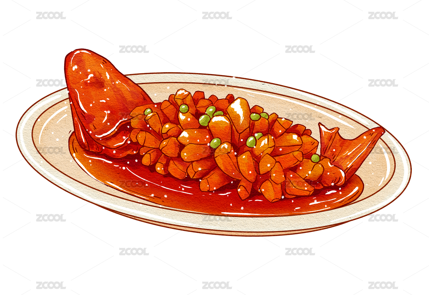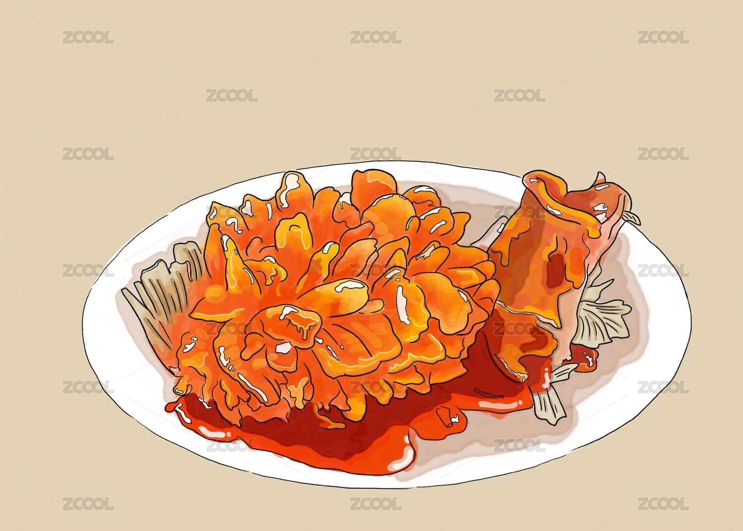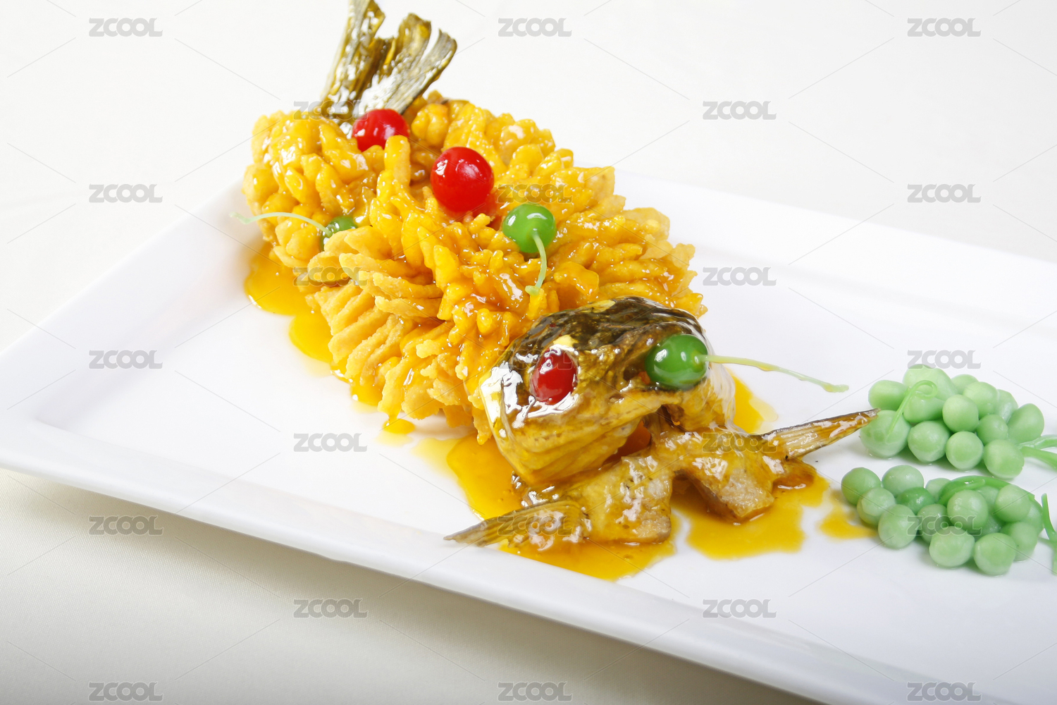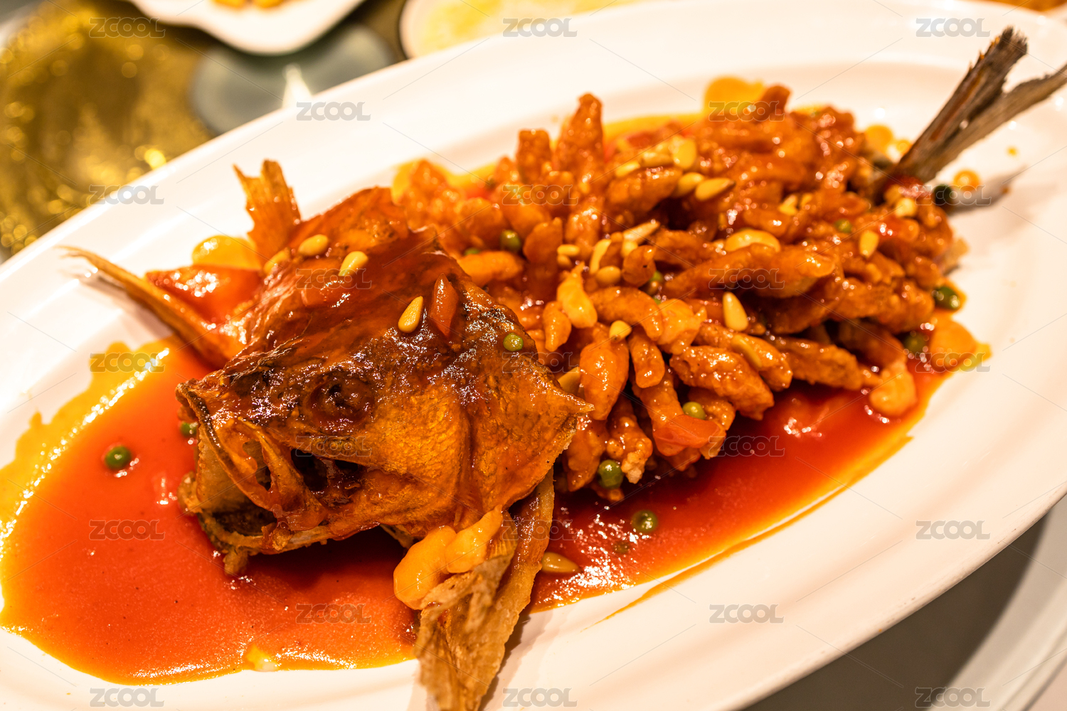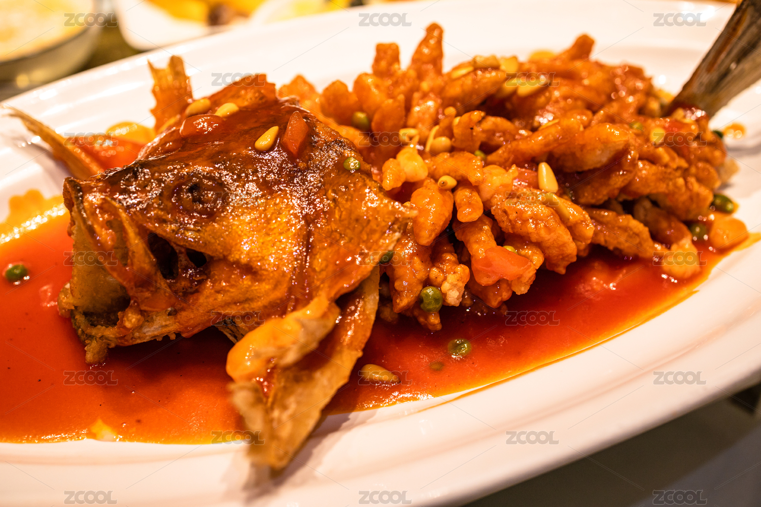餐盤(pán)里的美食松鼠魚(yú)特寫(xiě)
