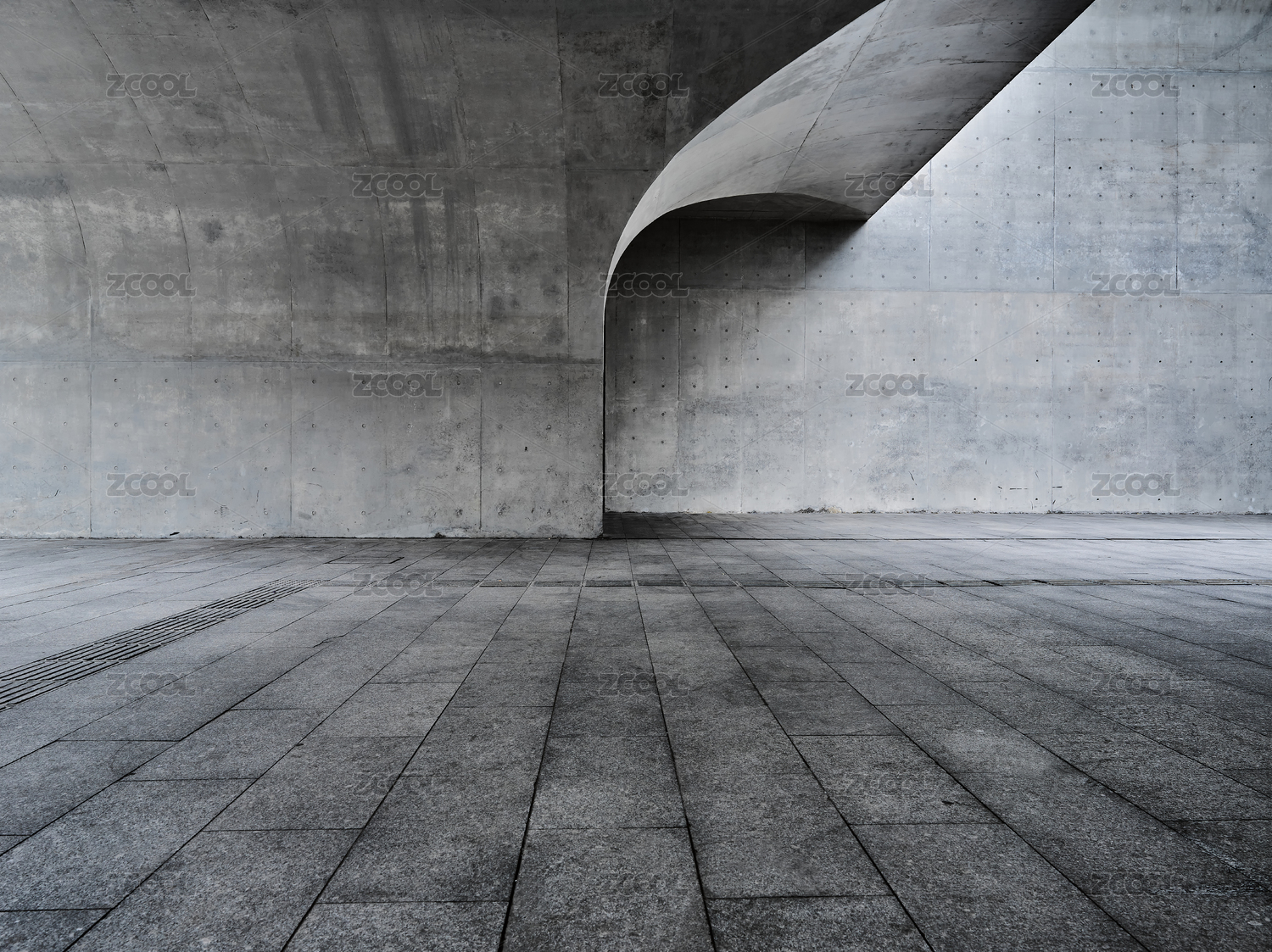 灰色混凝土墻和方磚地面背景