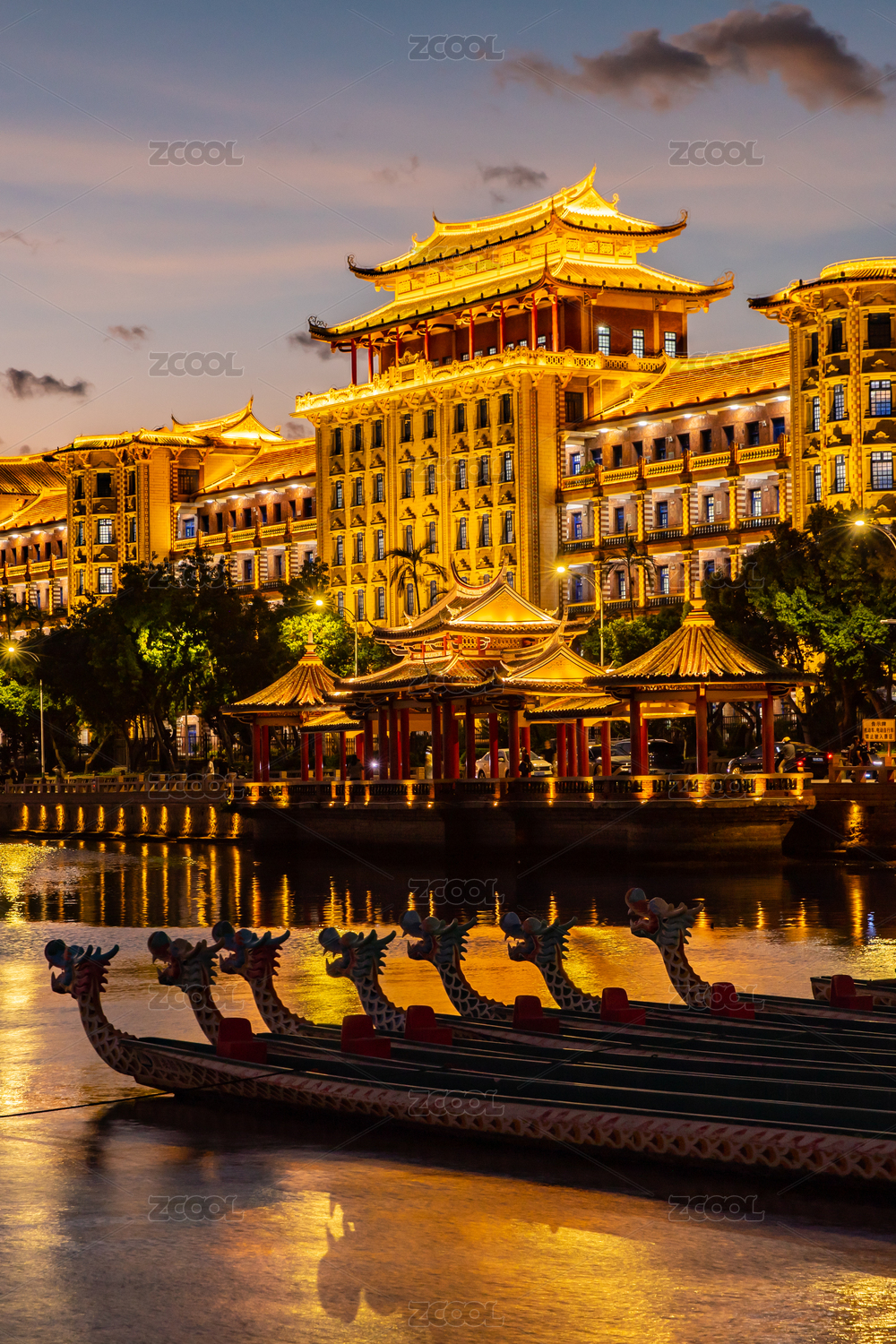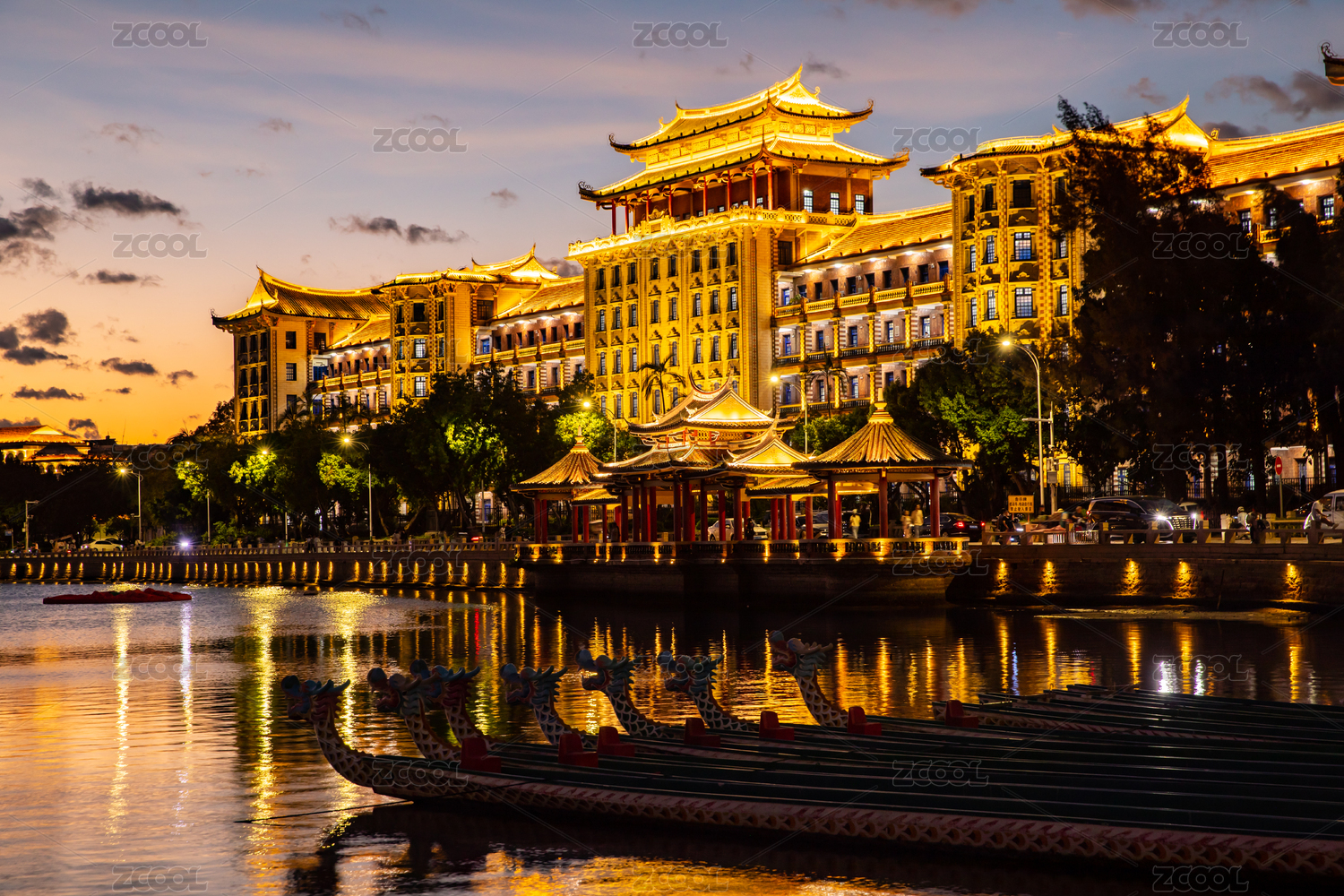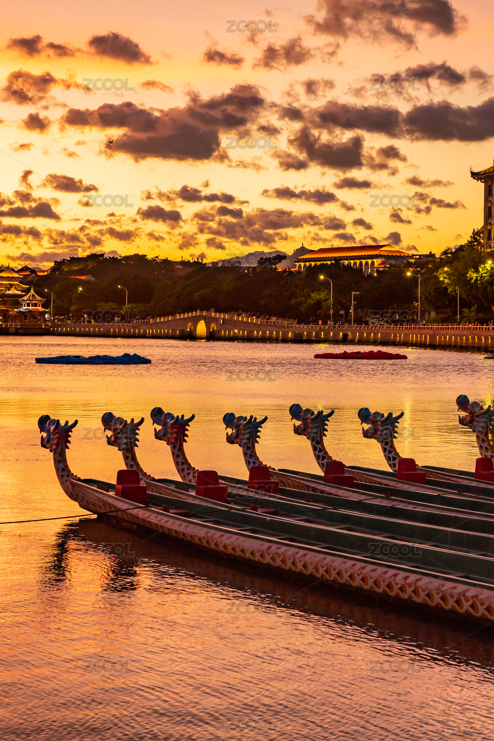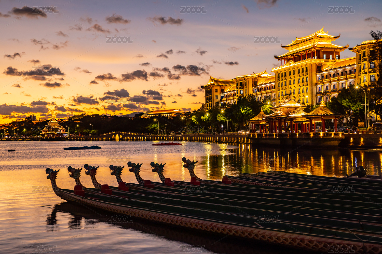 集美學(xué)村龍舟池晚霞