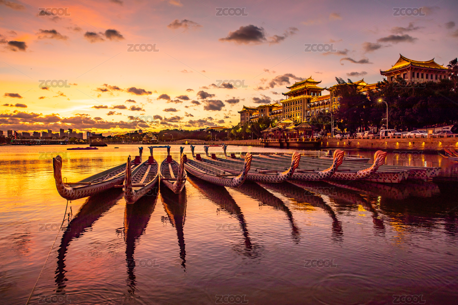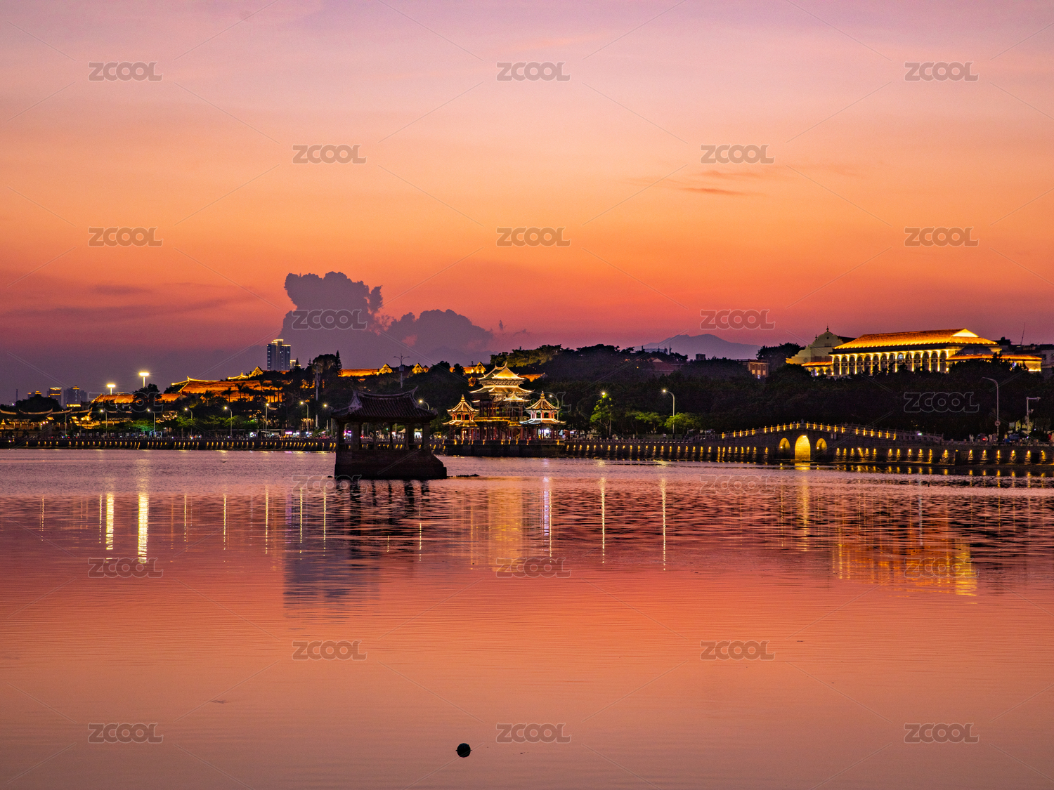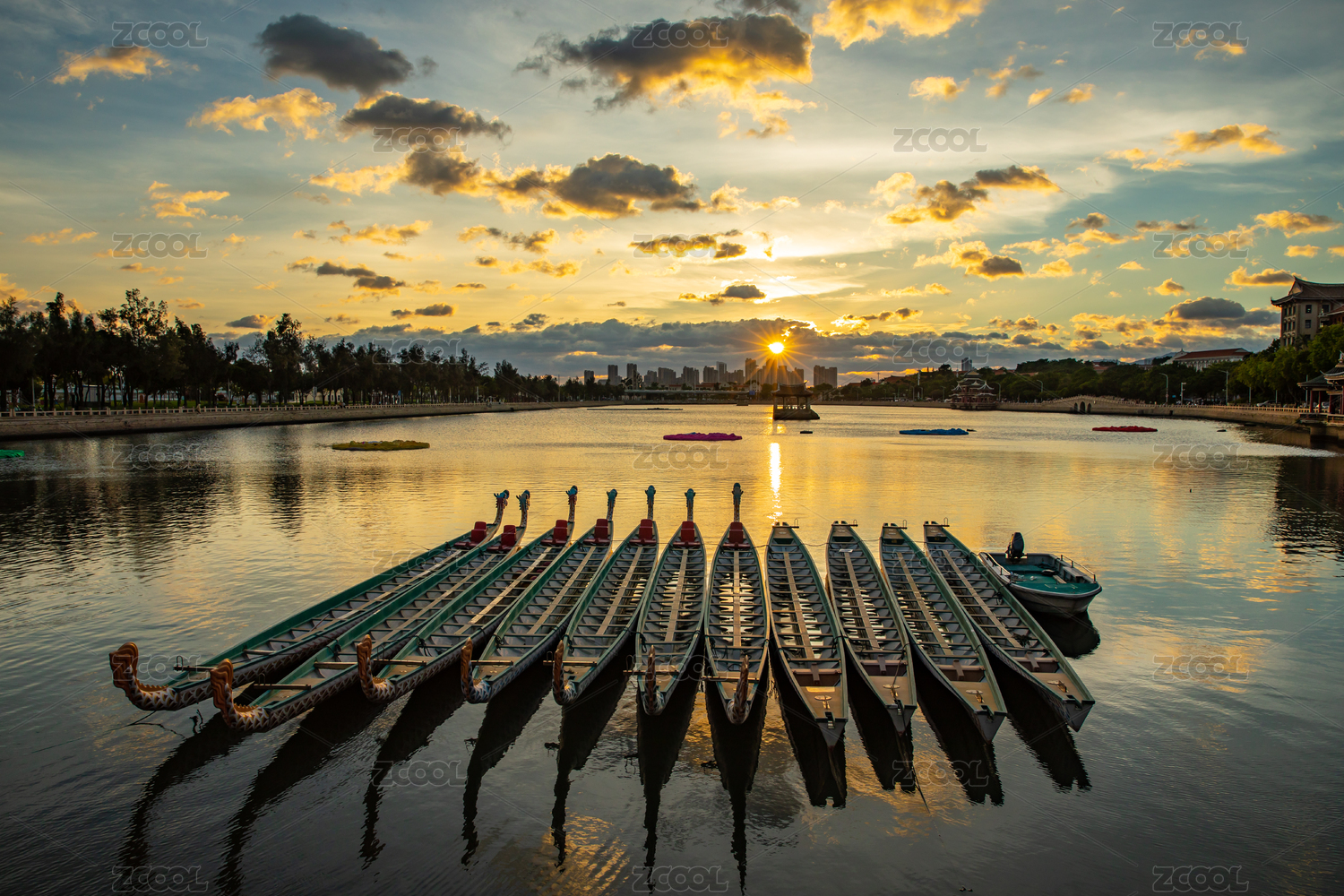集美學(xué)村龍舟池晚霞