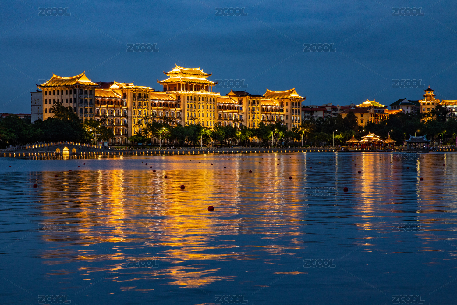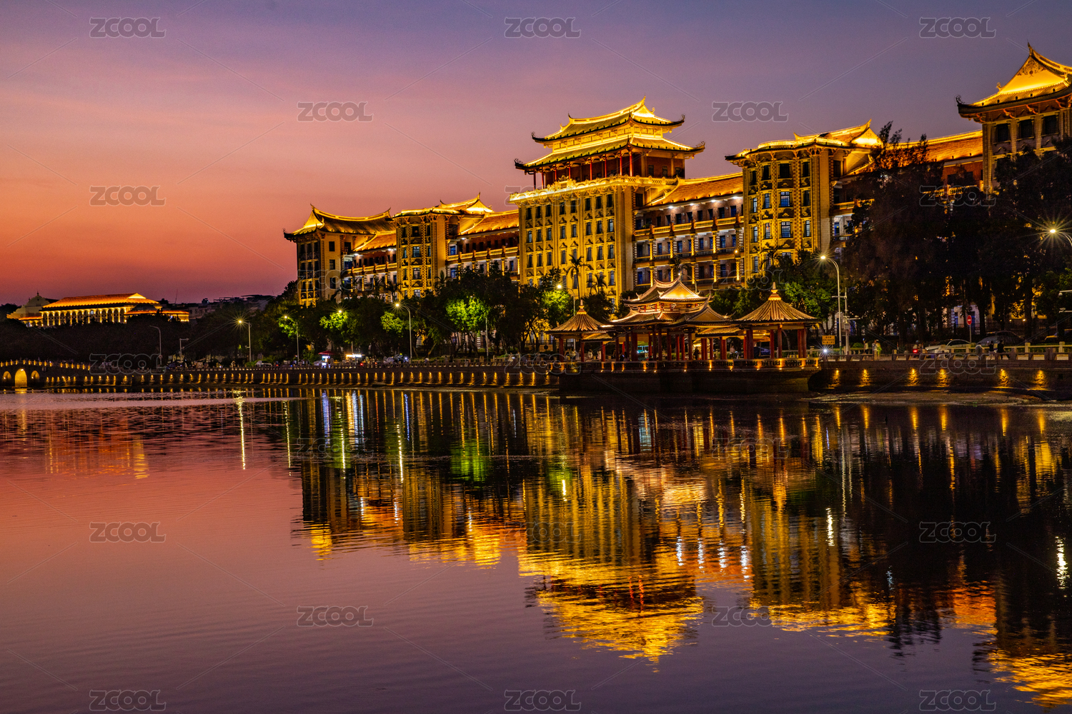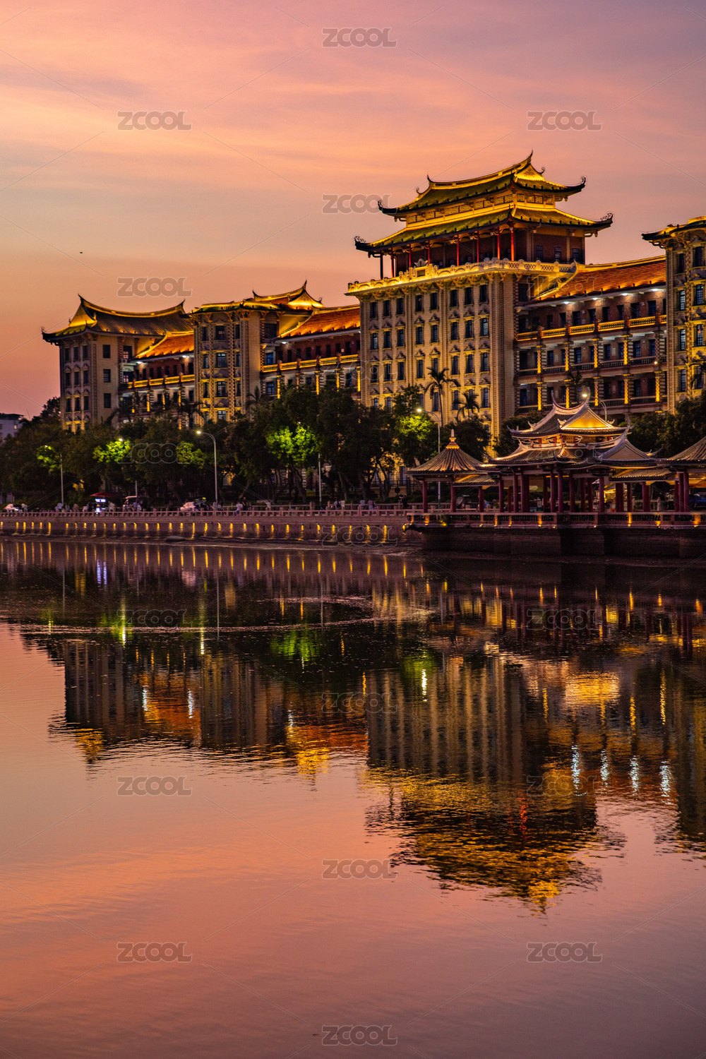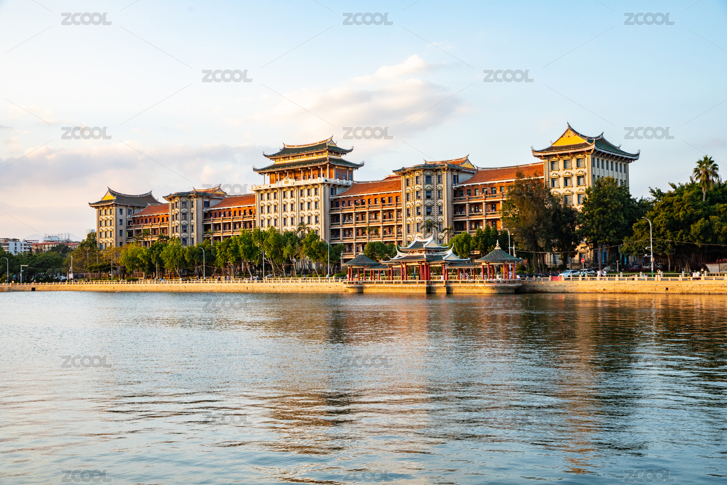 集美學(xué)村龍舟池晚霞