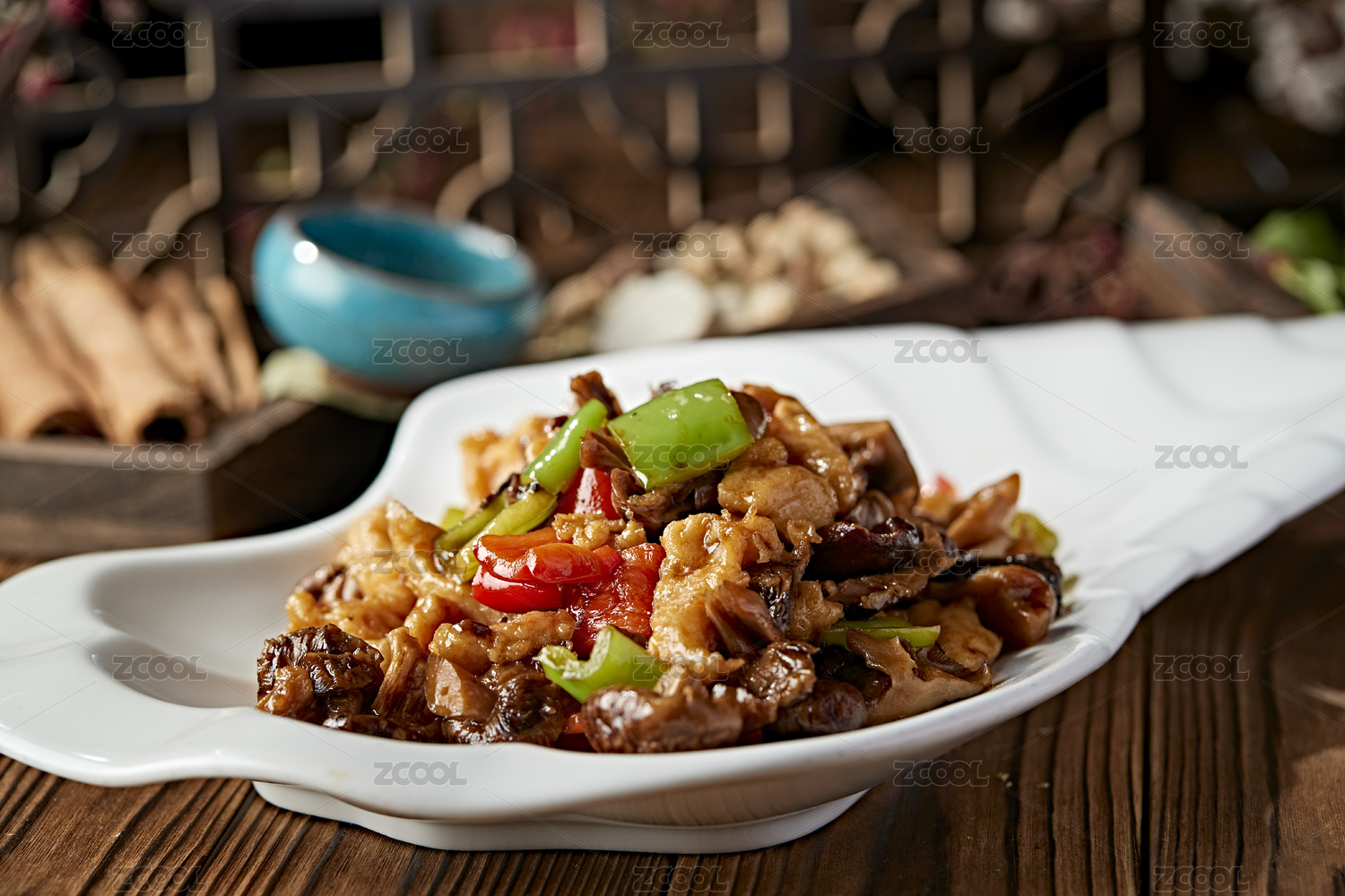 青紅椒松蘑小炒里脊肉片