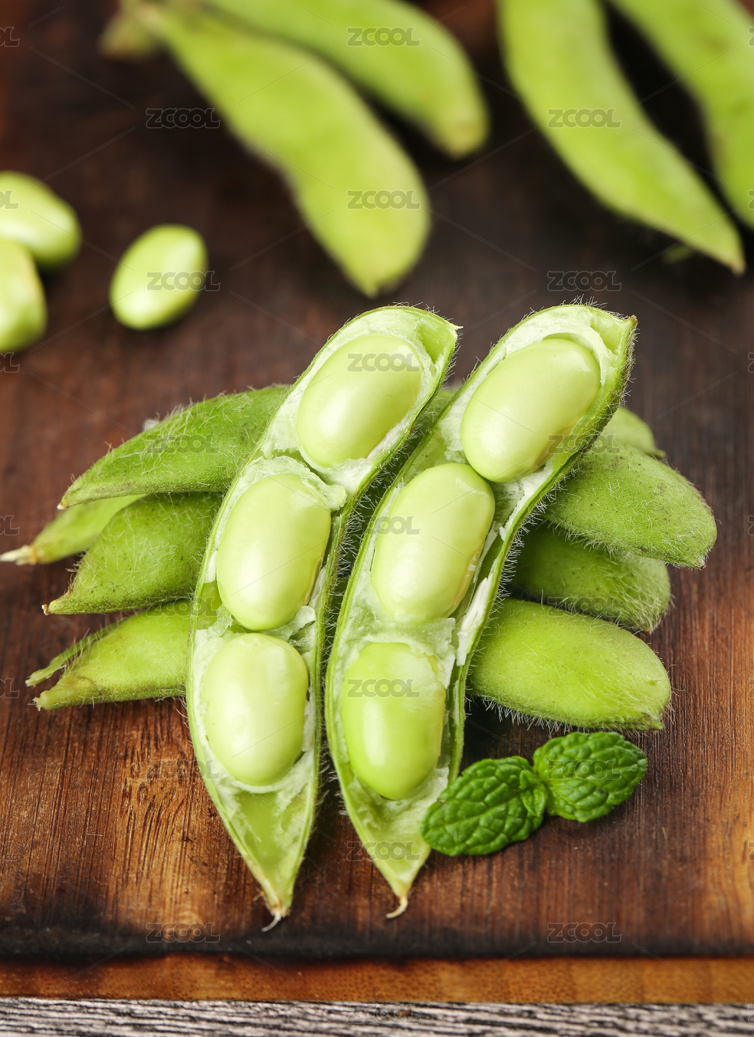 木底上放著毛豆莢和剝開殼的湖北毛豆