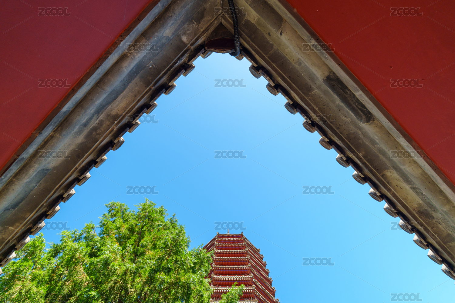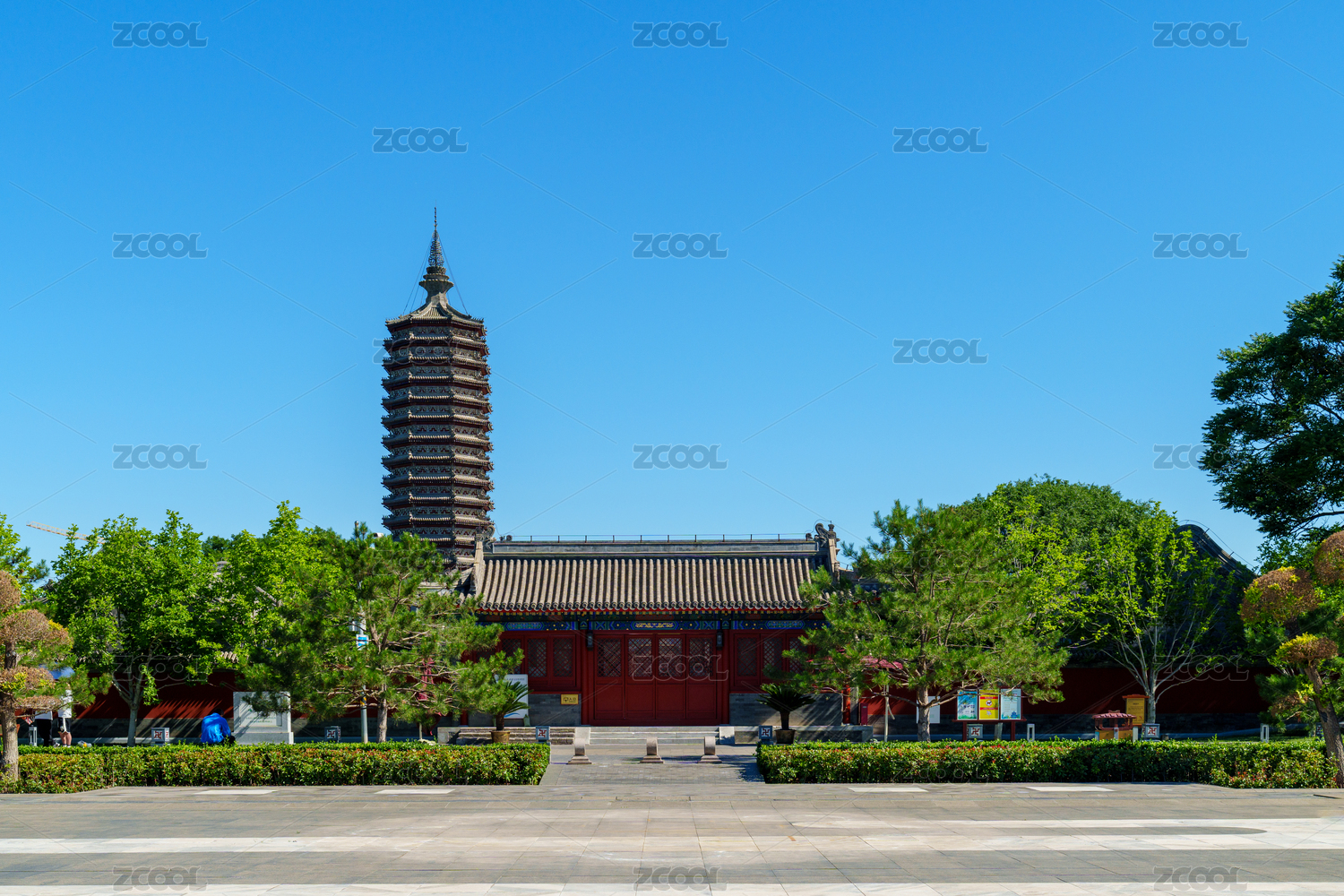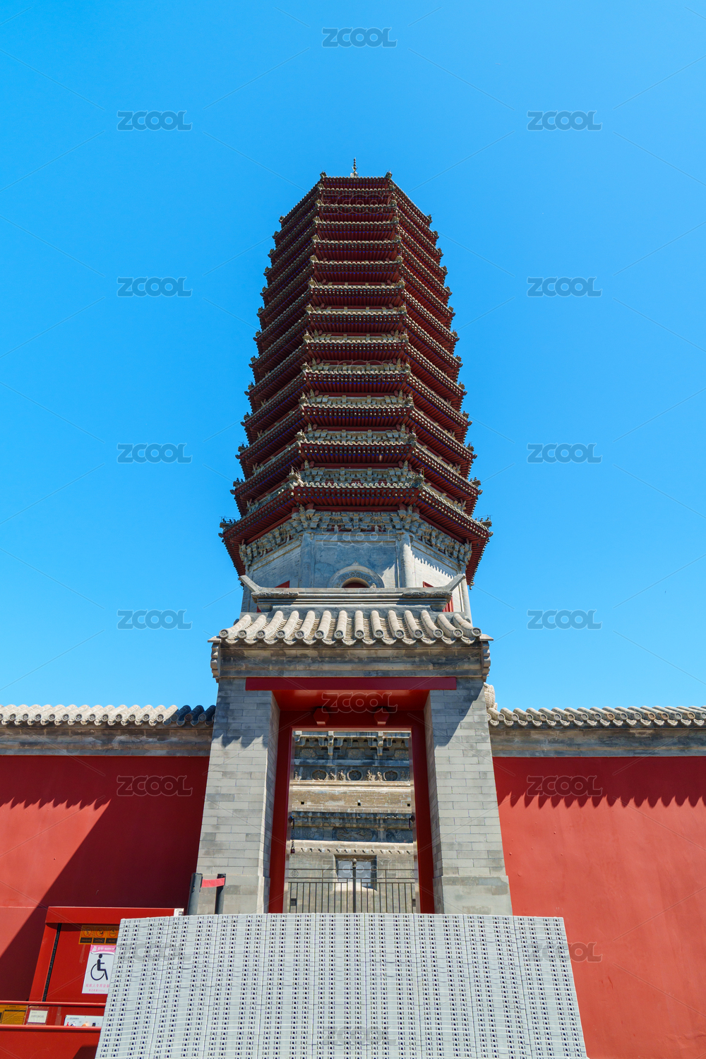 藍天下的通州燃燈佛舍利塔與紅墻灰瓦