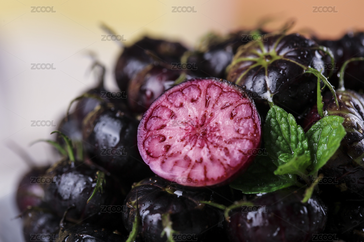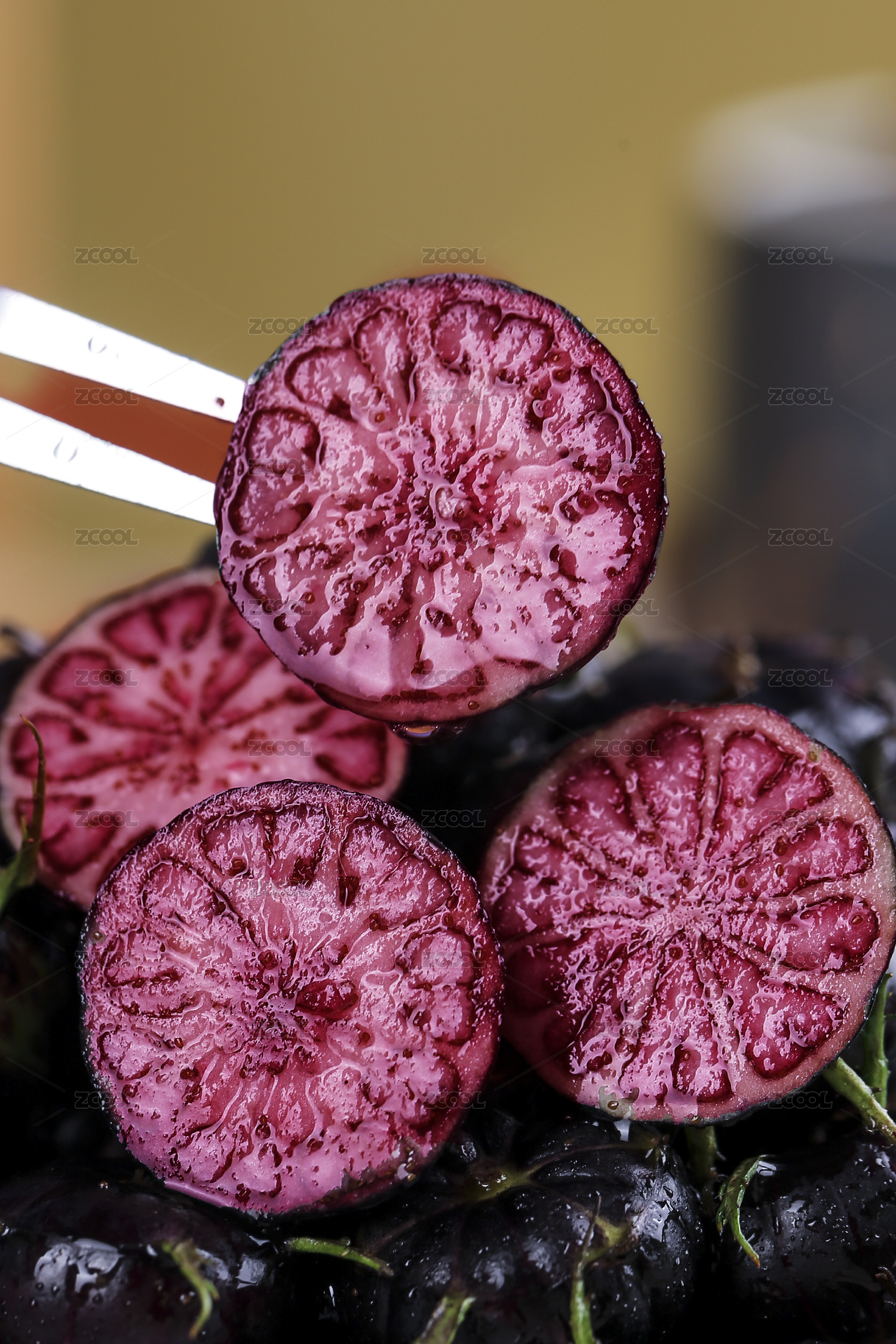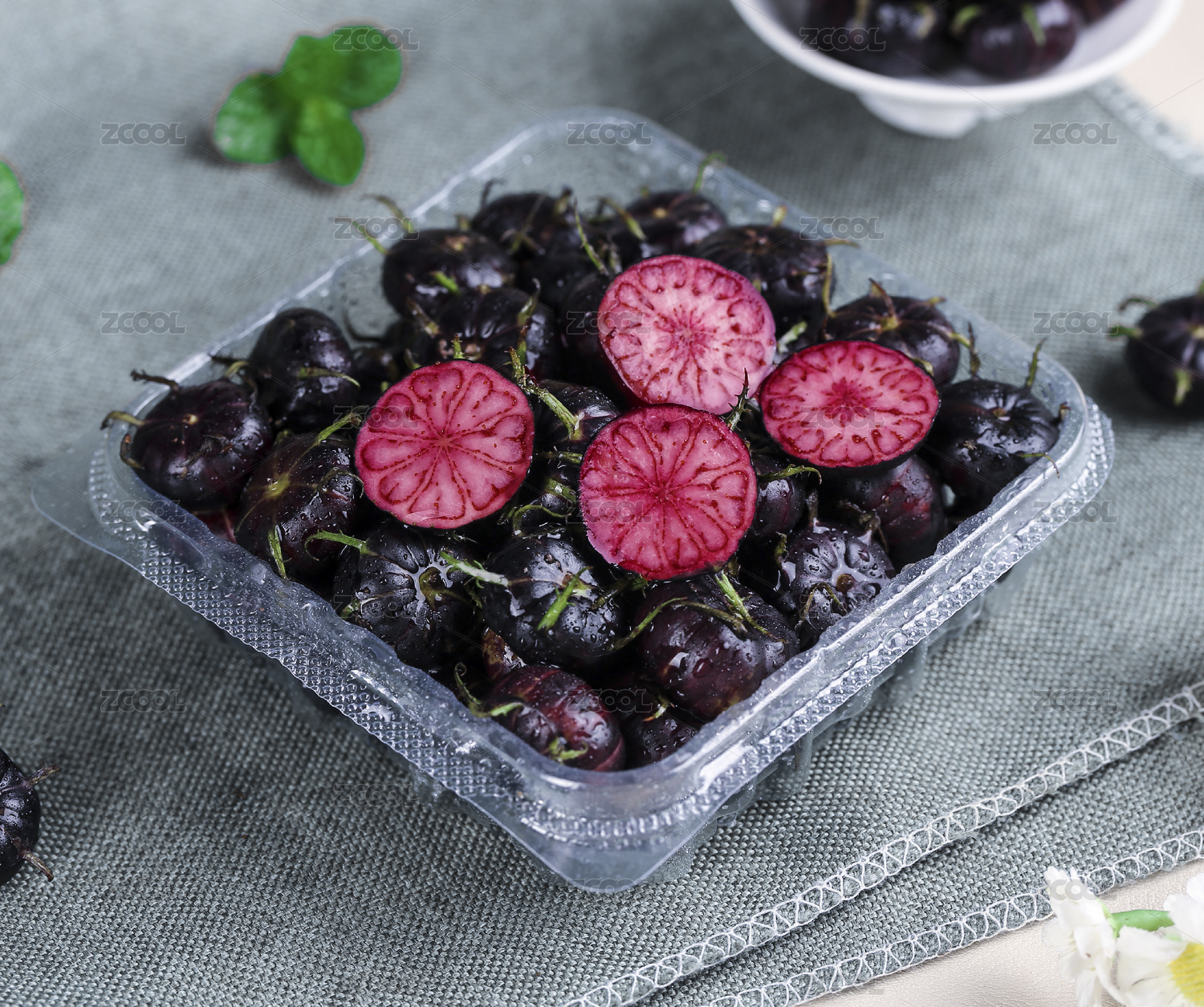白底上放著半邊切面的紅果參
