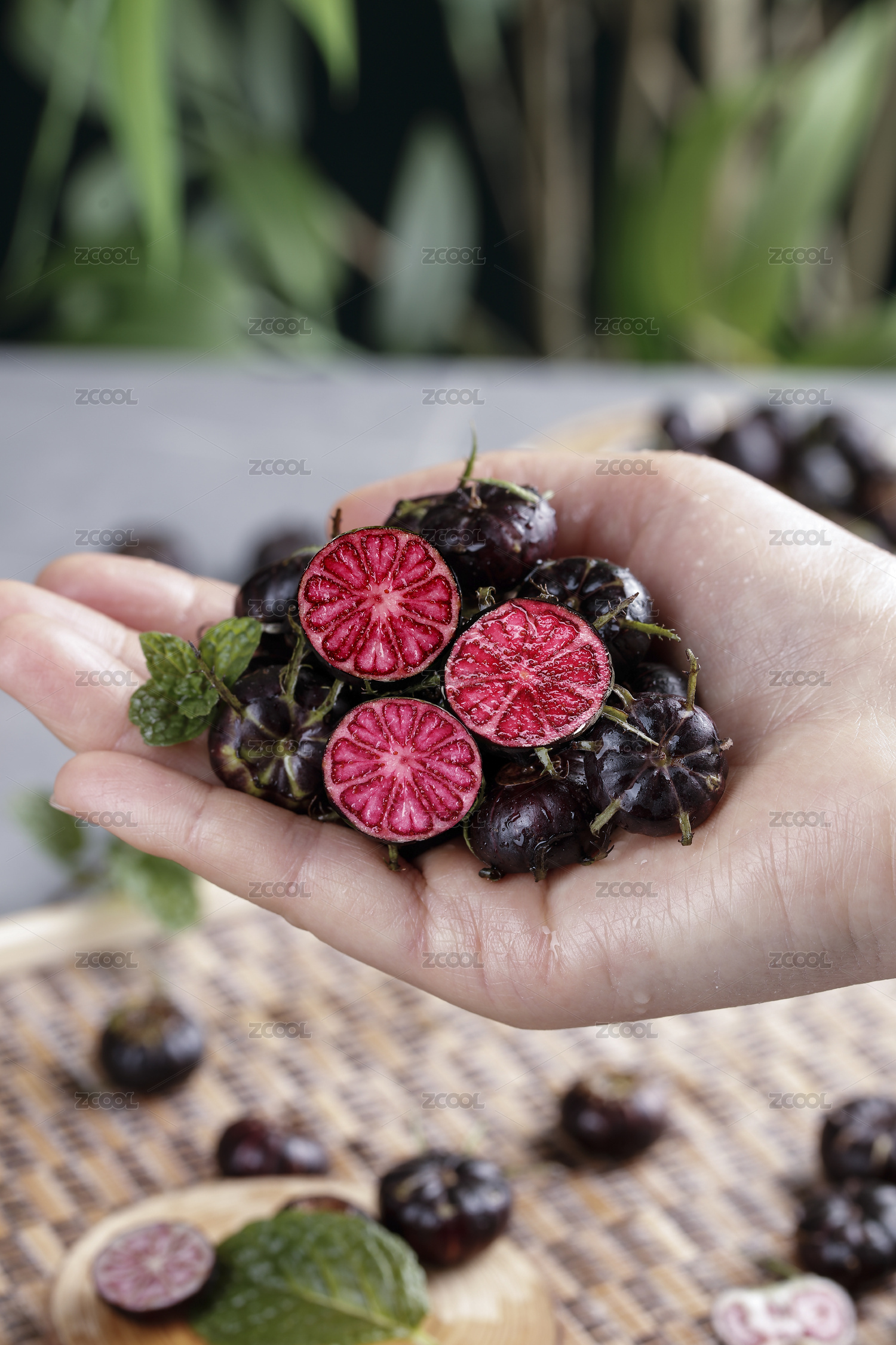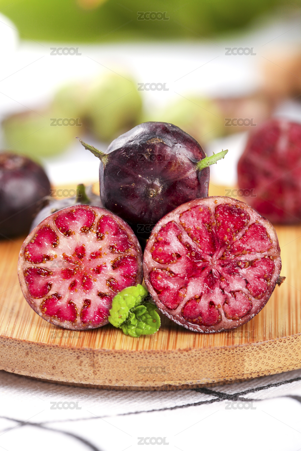 木板上的蜘蛛果和切開的山荸薺
