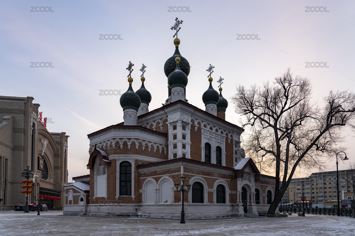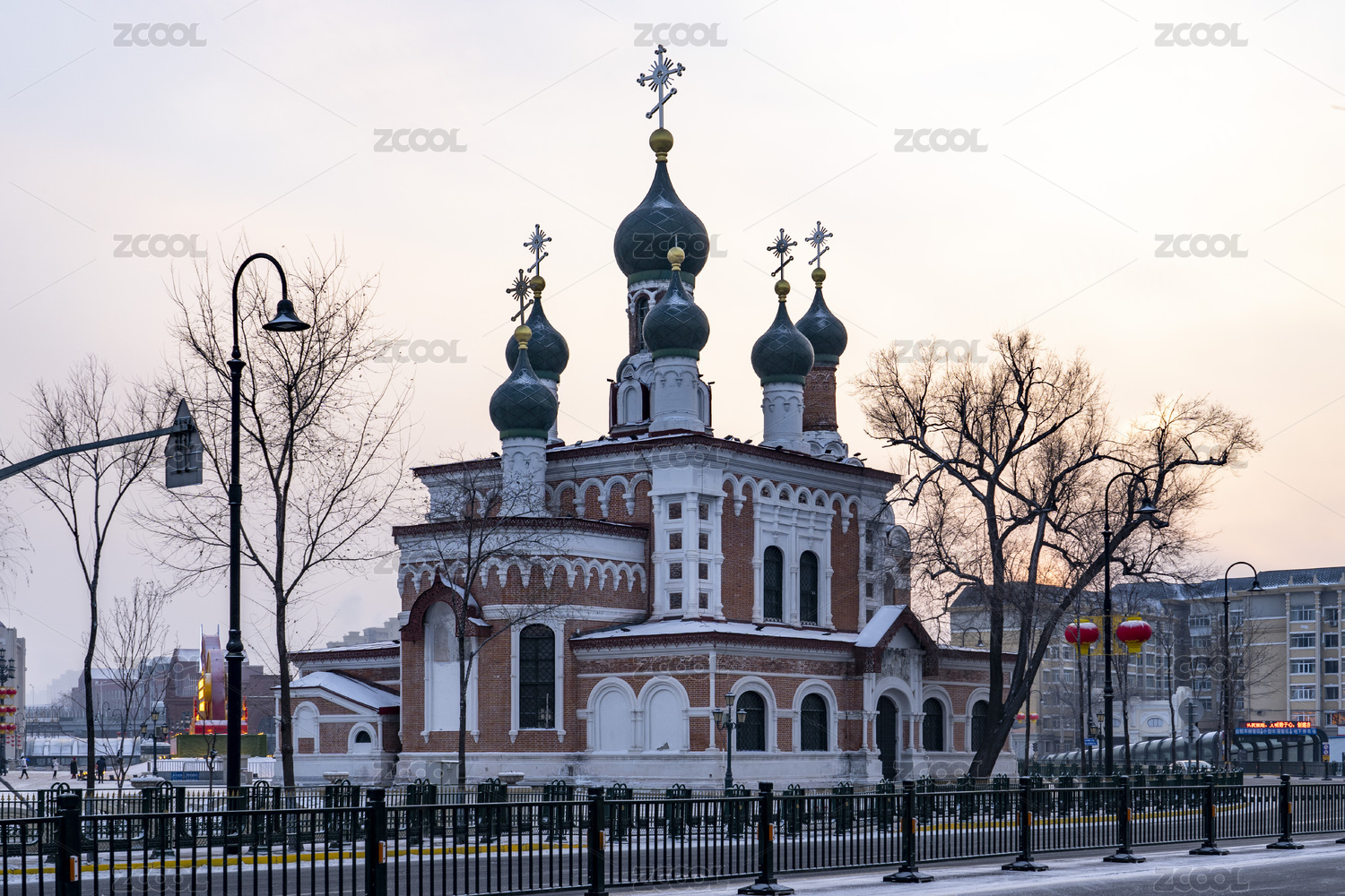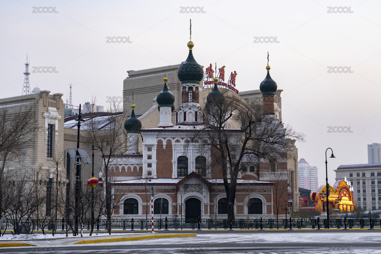 哈爾濱圣伊維爾教堂建筑冬季城市景觀