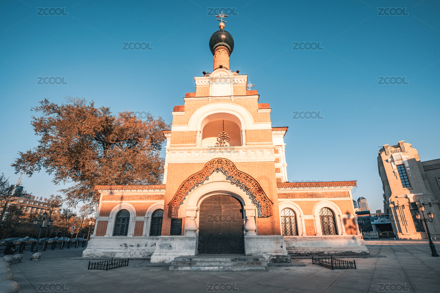 中國(guó)黑龍江哈爾濱圣伊維爾教堂城市建筑風(fēng)光