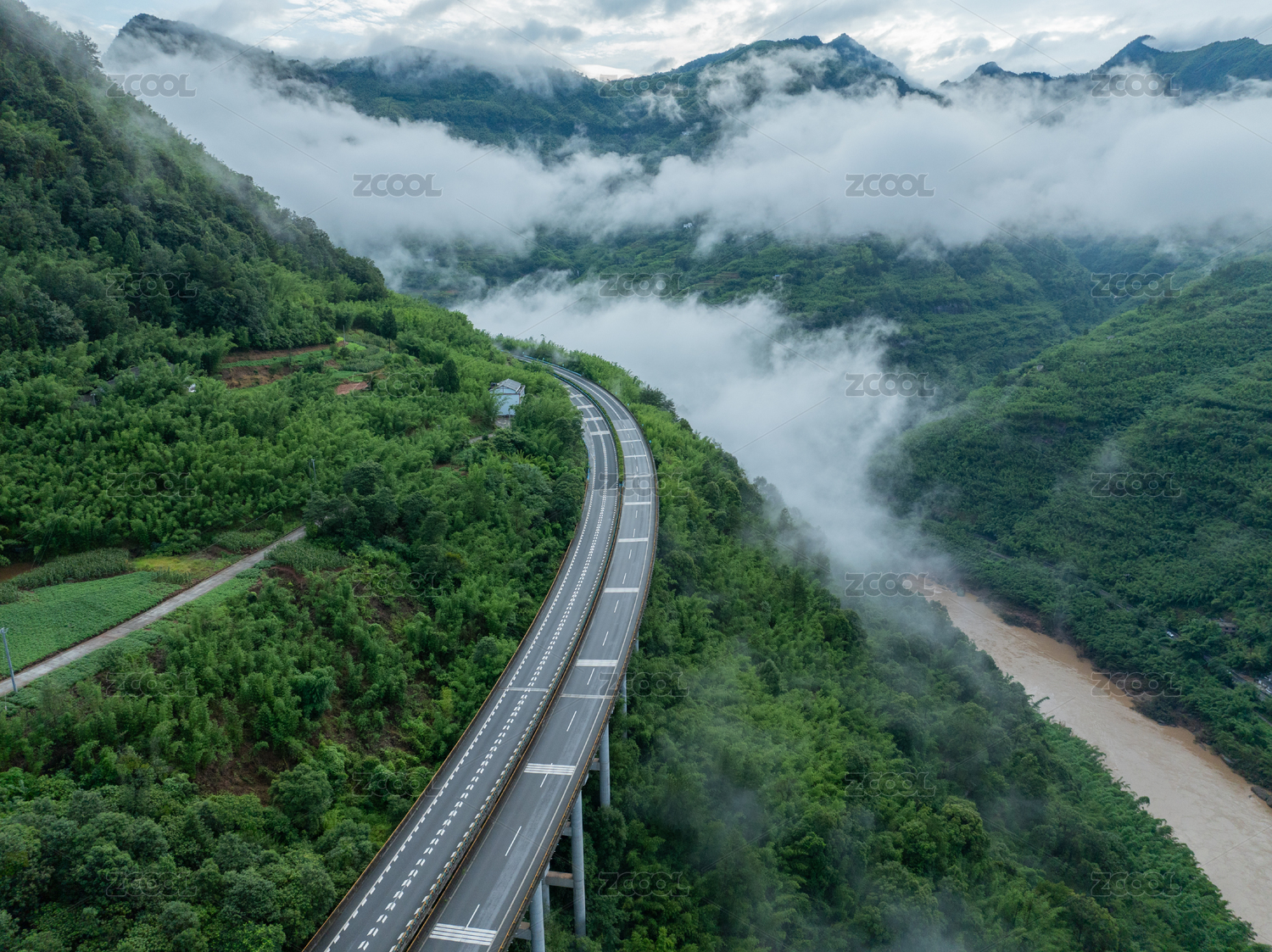 中國貴州省遵義市赤水山區(qū)高速公路風(fēng)景航拍
