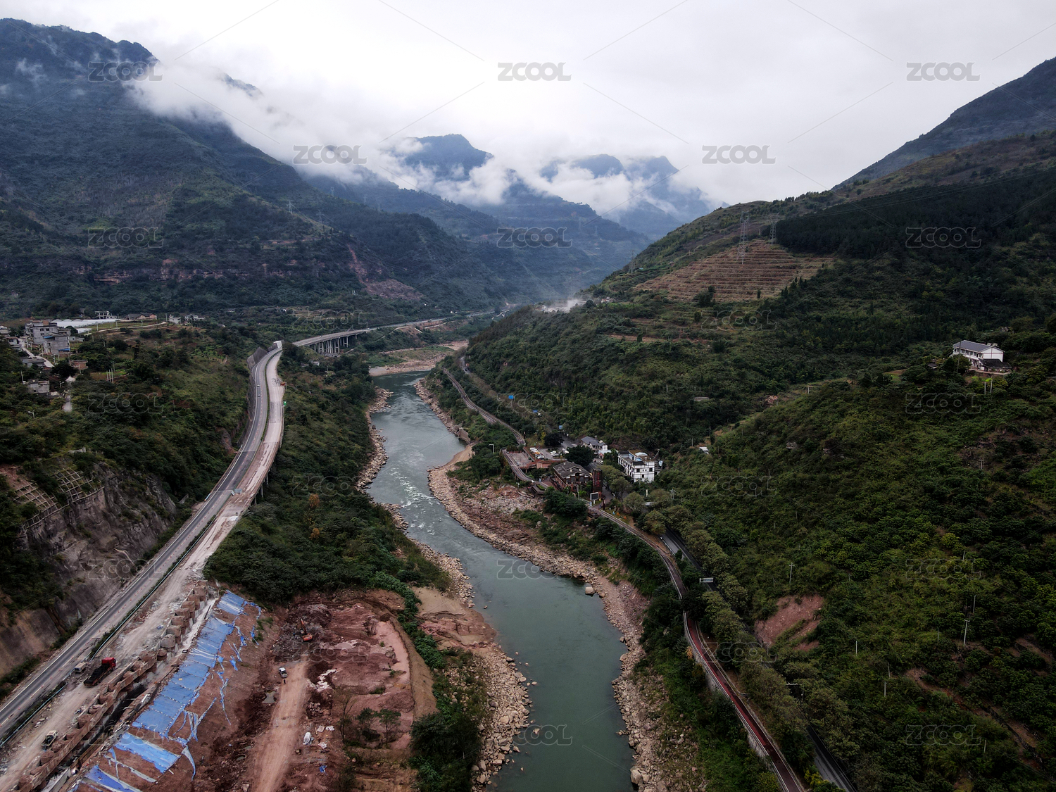 四川蓉遵高速公路黃艤長江大橋航拍長江風(fēng)光