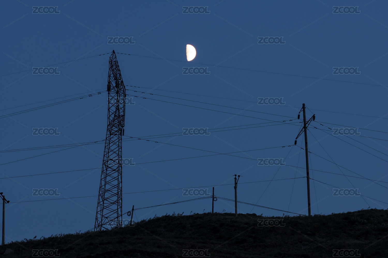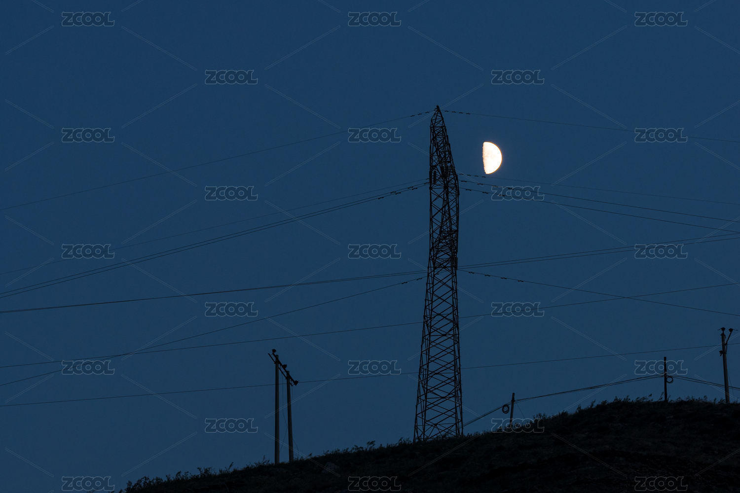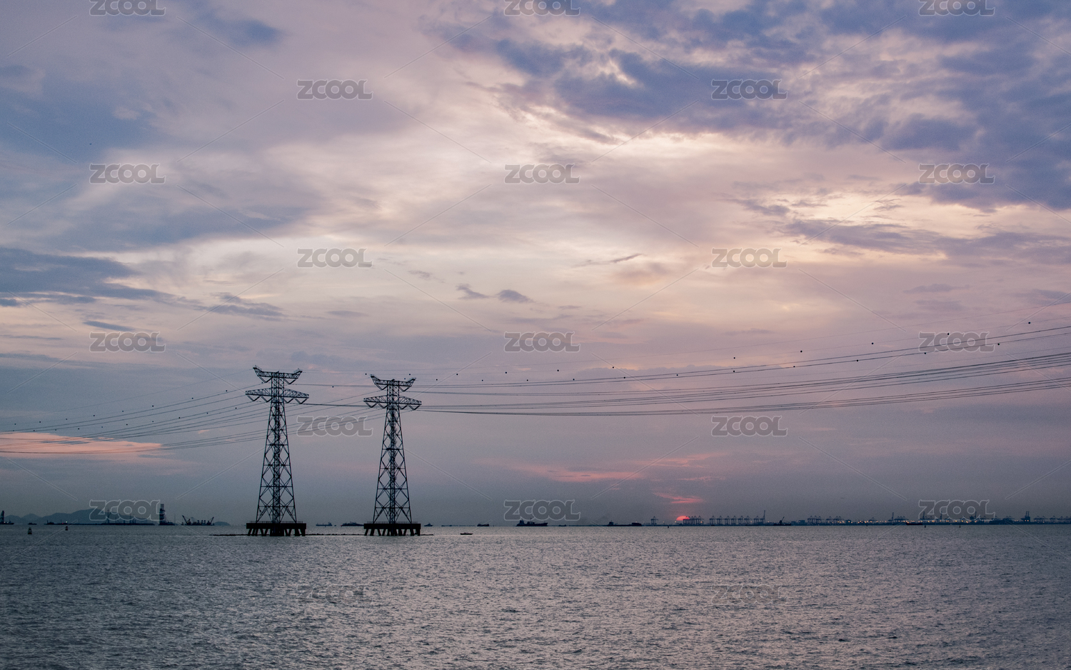 海上日落輸電網(wǎng)輸電線高壓電線塔攝影照片