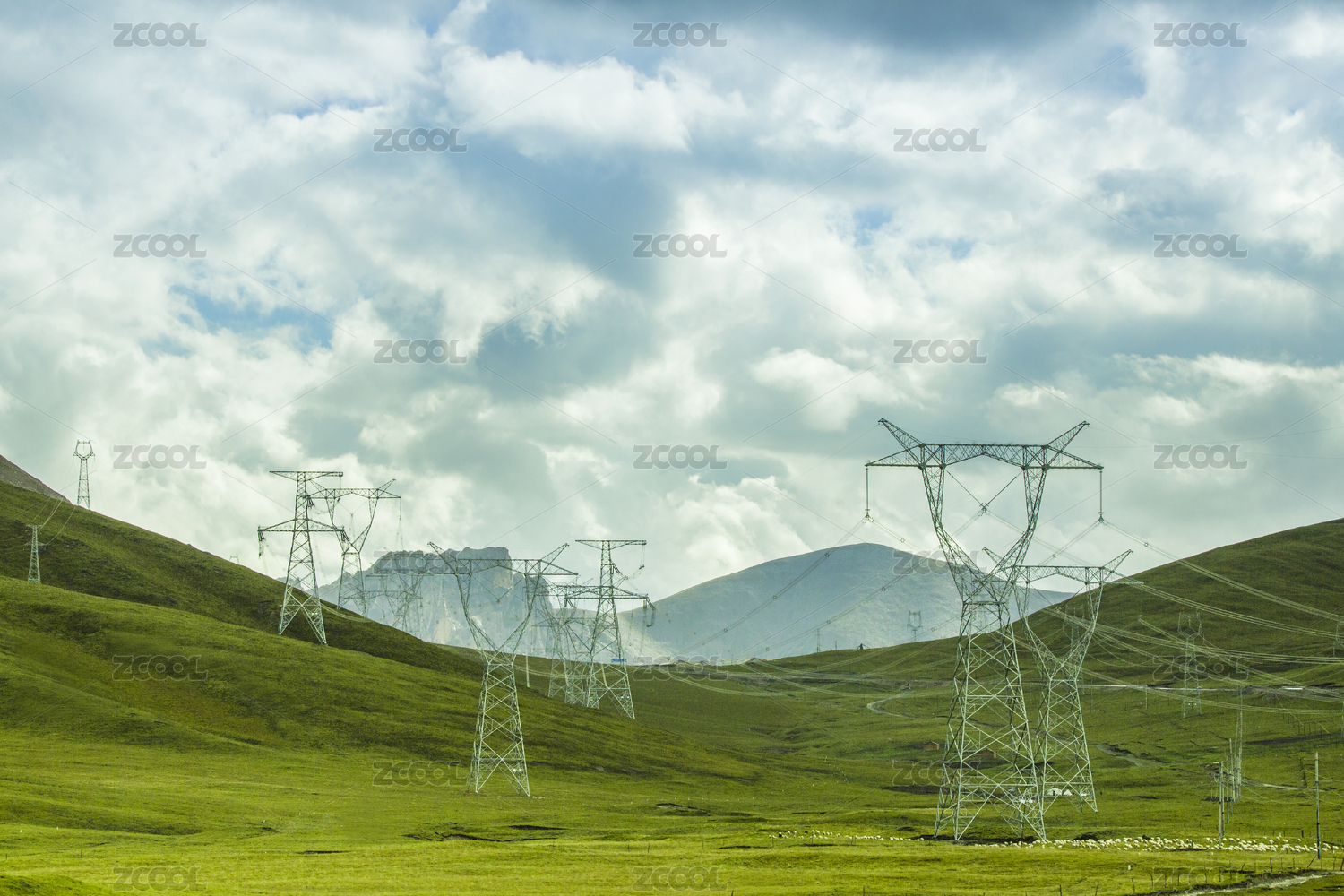四川阿壩黑水縣大山風(fēng)光和輸電線塔