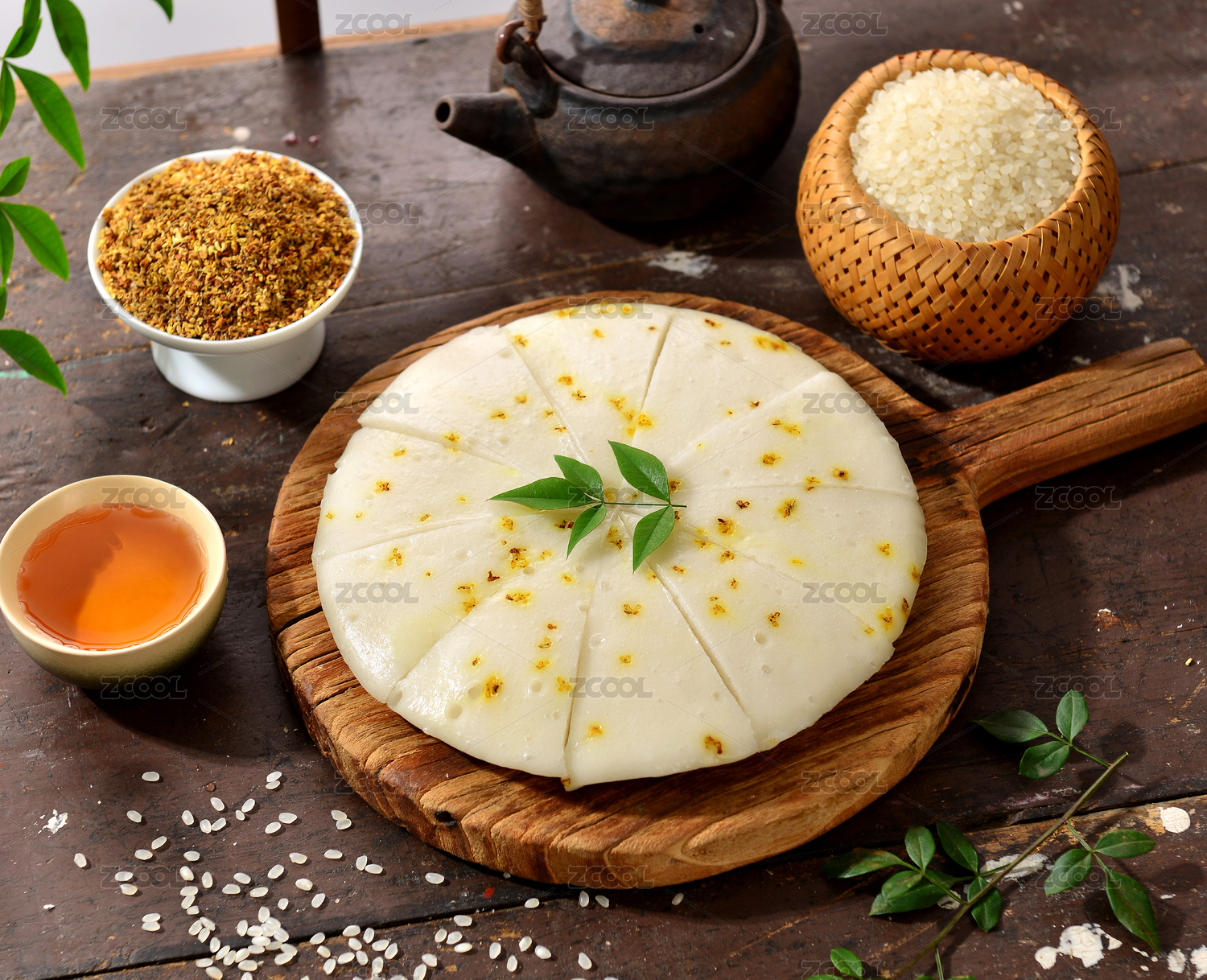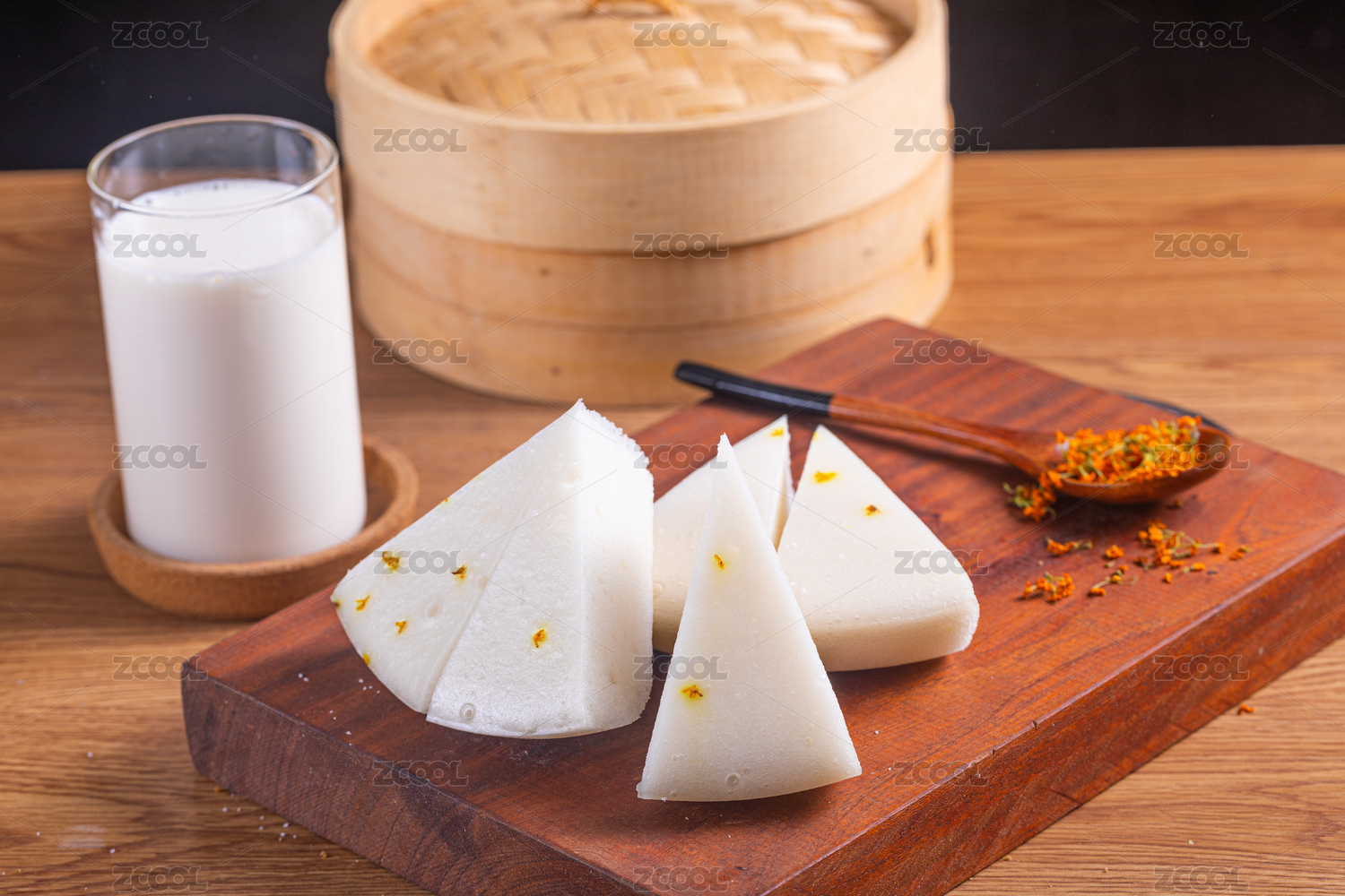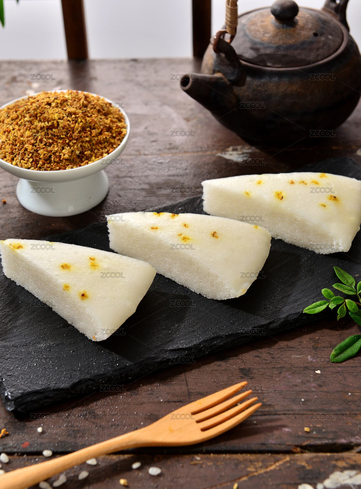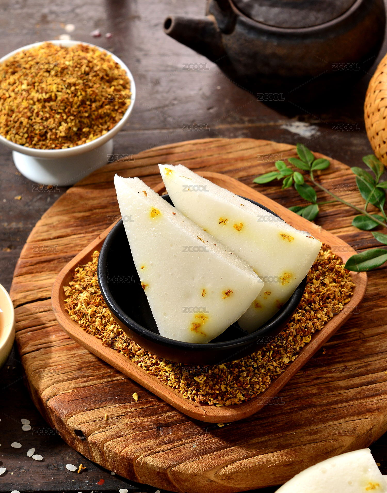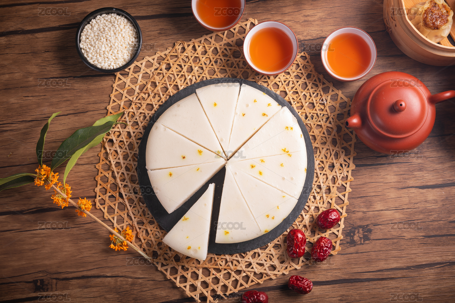 傳統(tǒng)中式背景中切好的桂花發(fā)糕