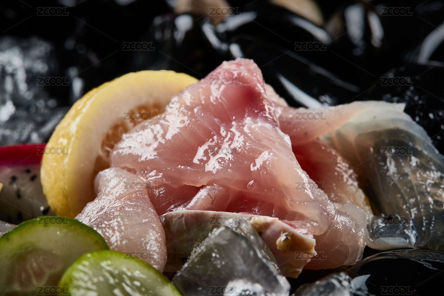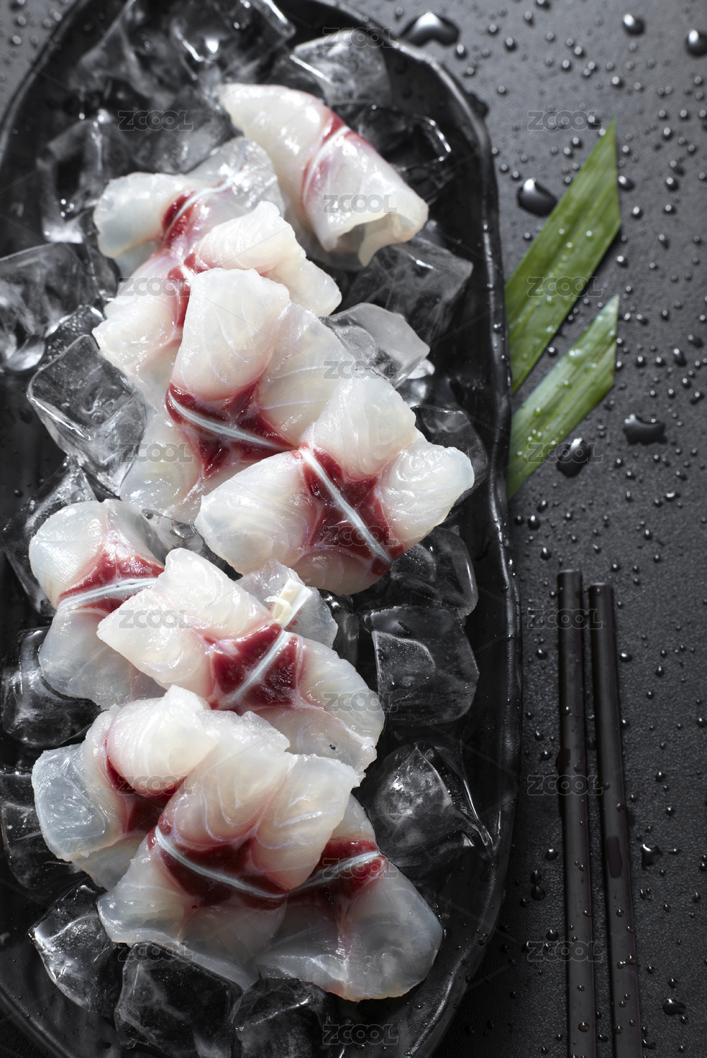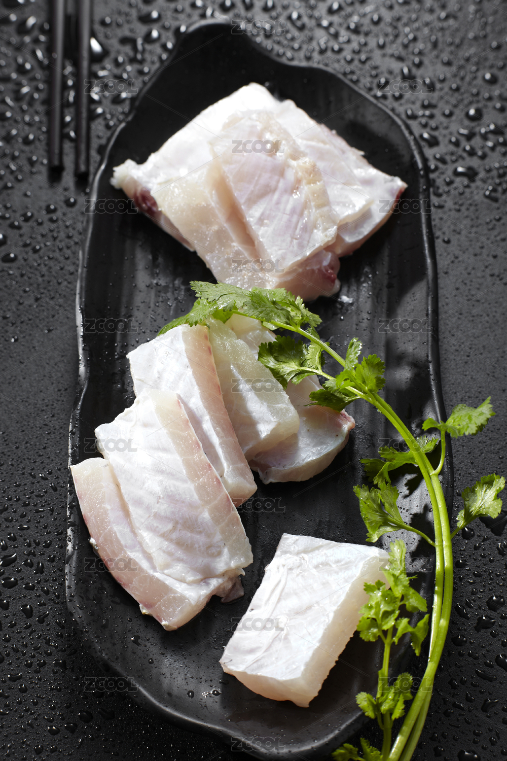 裝在黑盤里的新鮮生魚肉