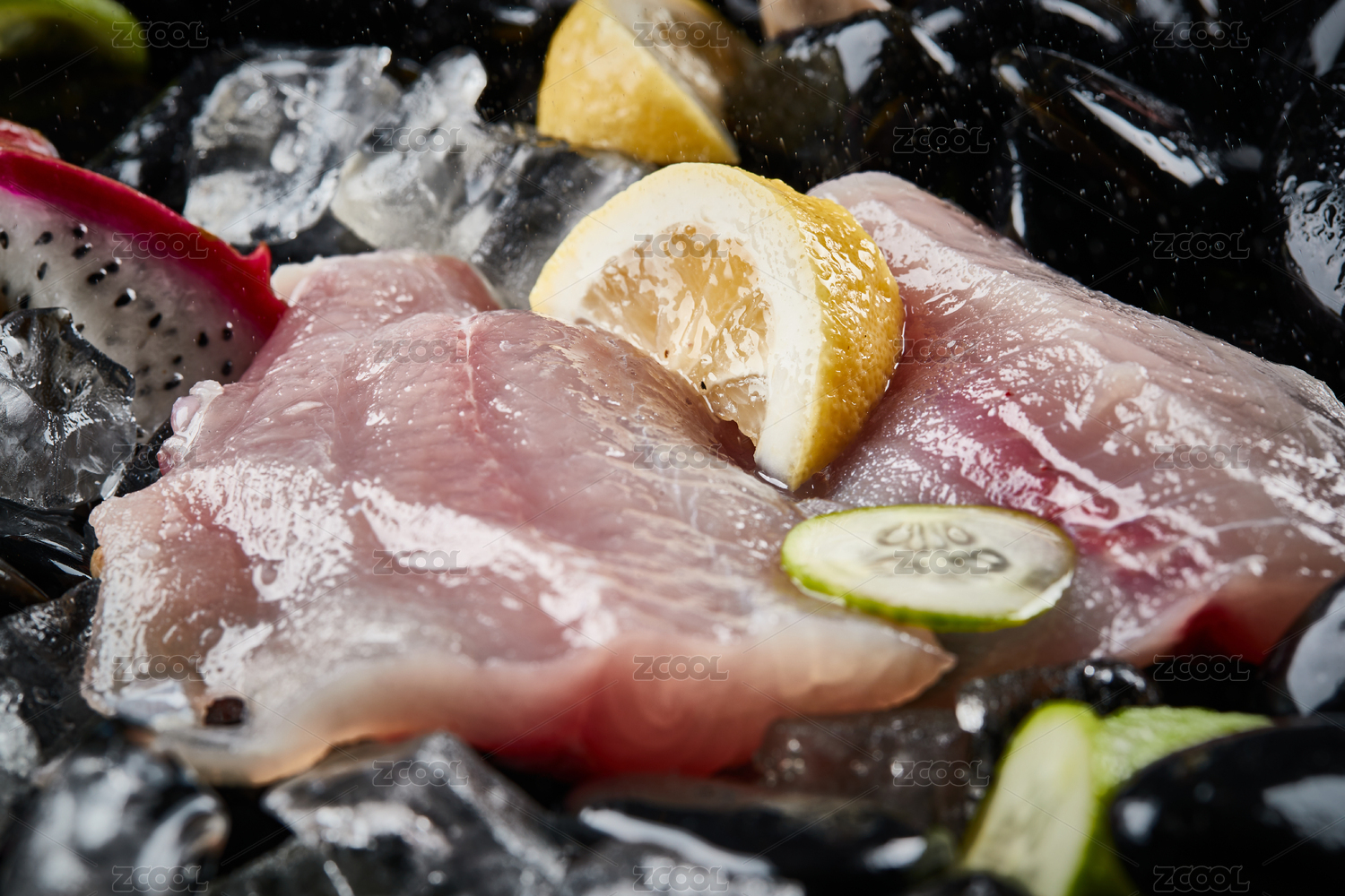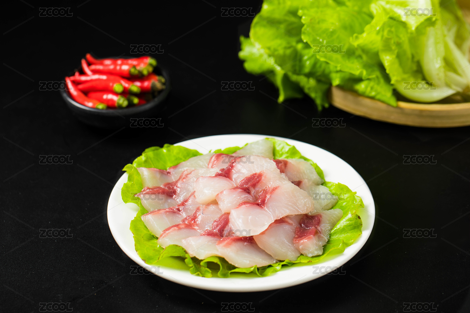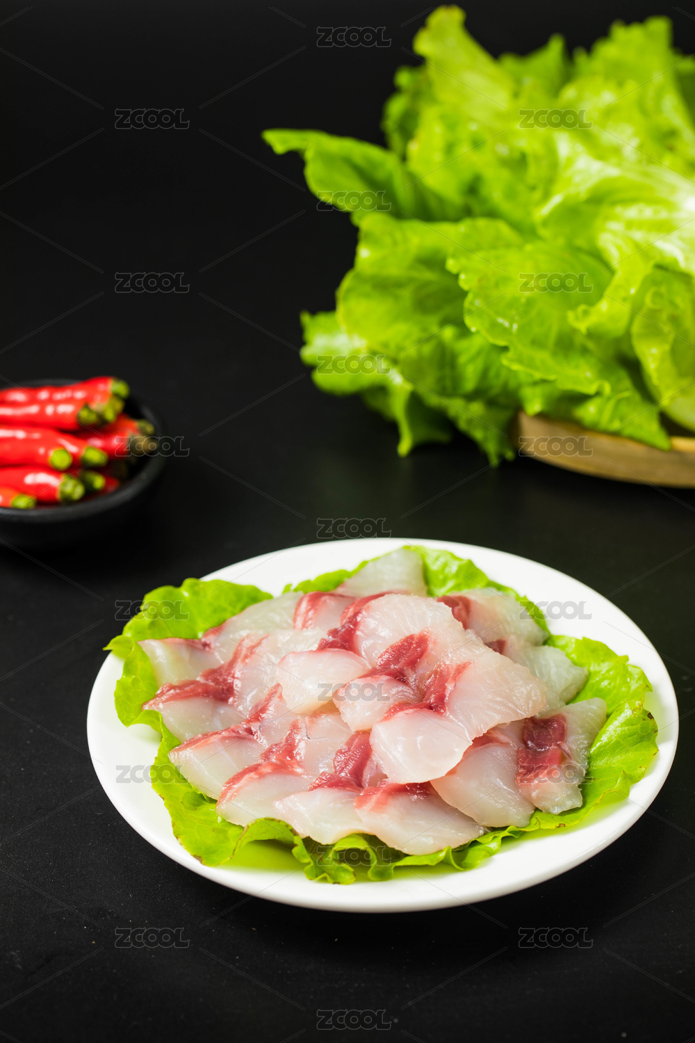 裝在黑盤里的新鮮生魚肉