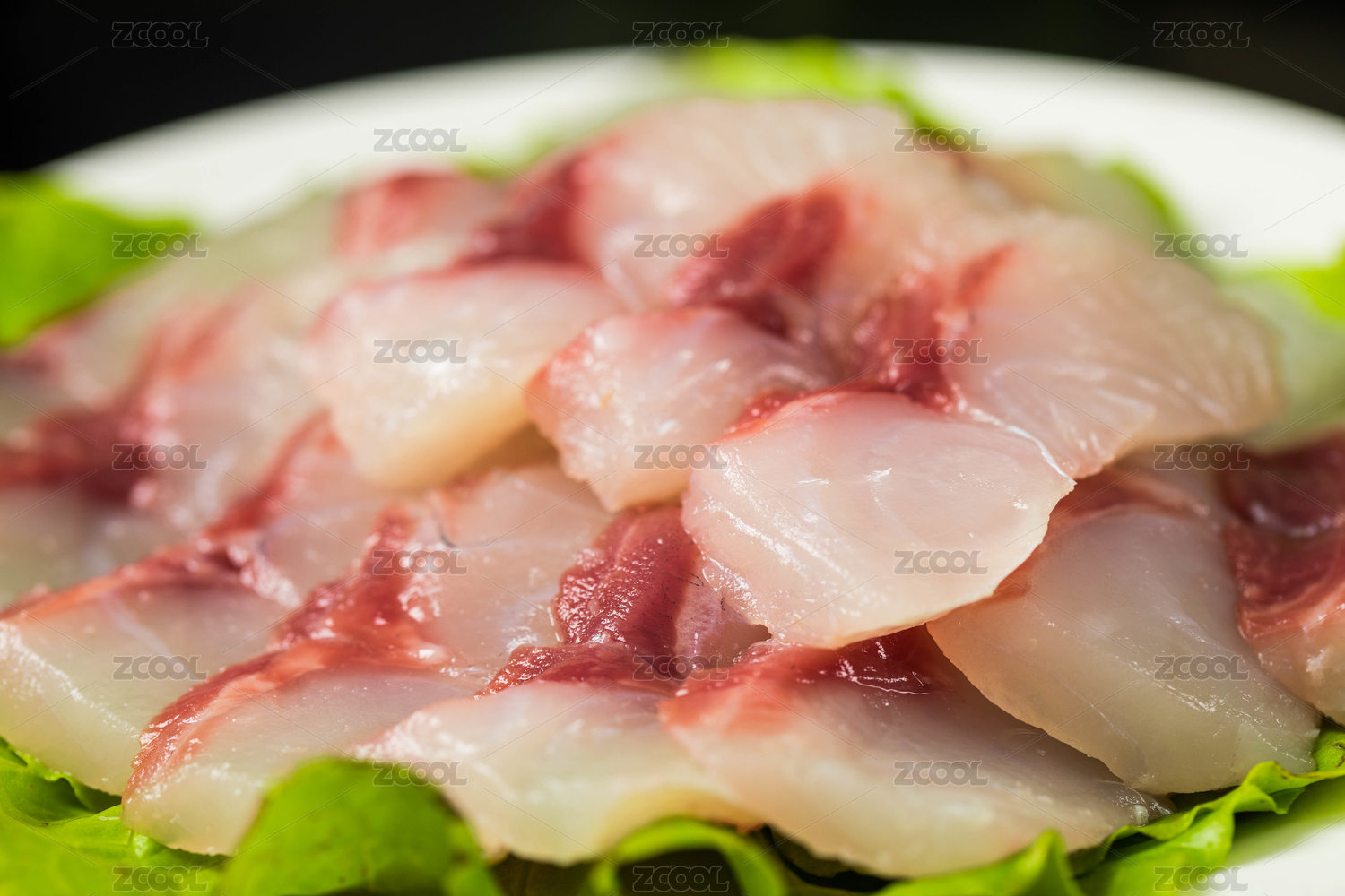 裝在白盤里的新鮮生魚肉