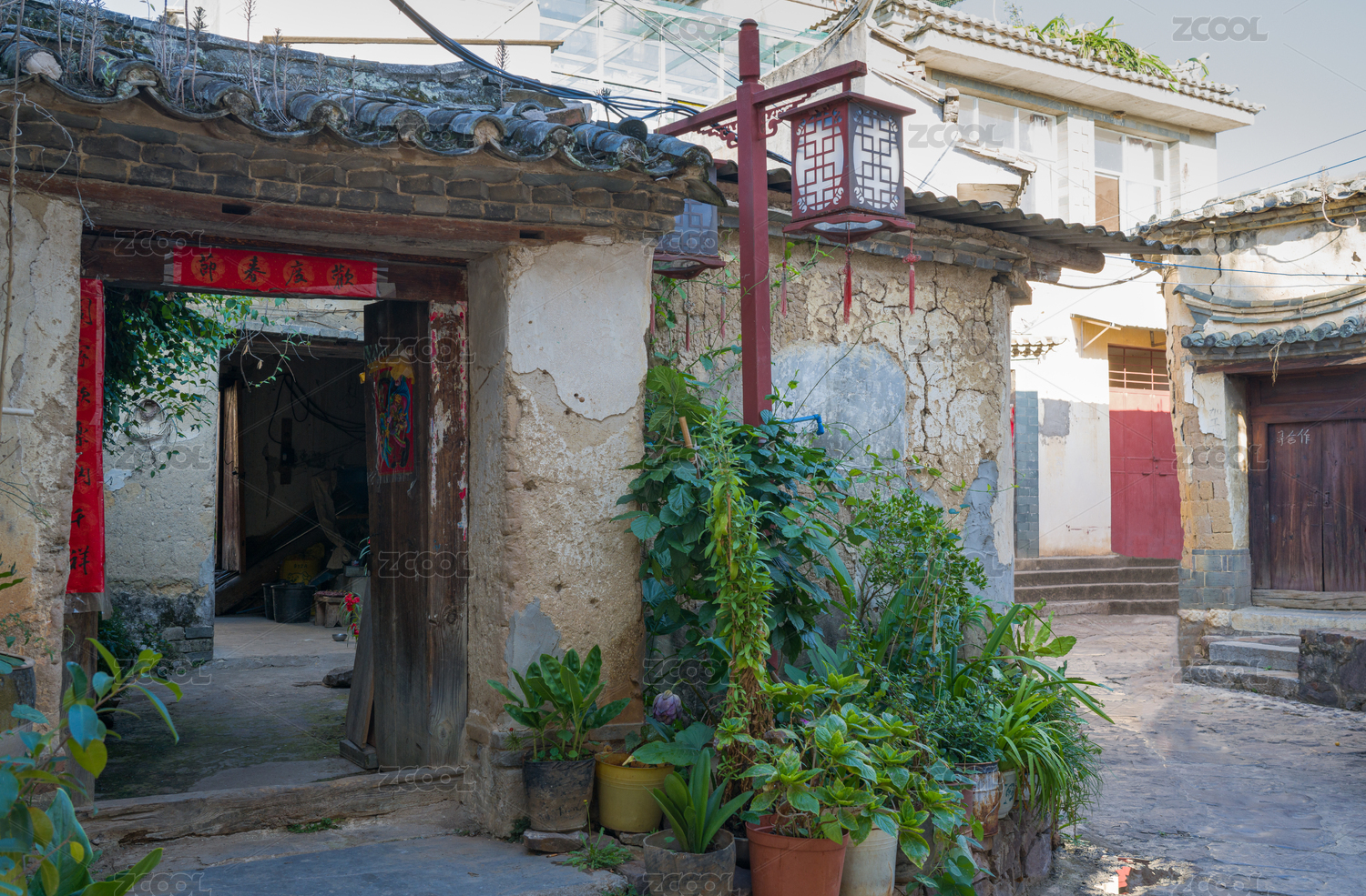 云南紅河州建水團(tuán)山古村傳統(tǒng)民居及門前小巷