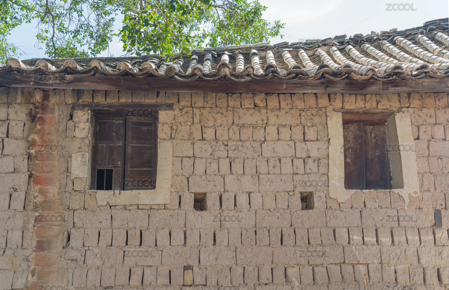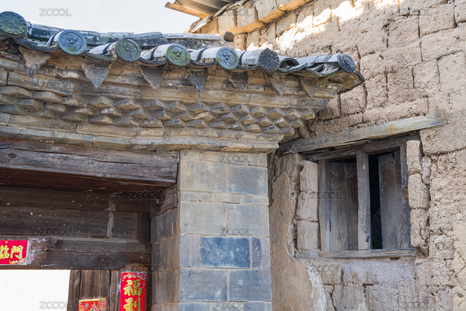 云南紅河建水團(tuán)山村傳統(tǒng)民居瓦檐土掌房特寫