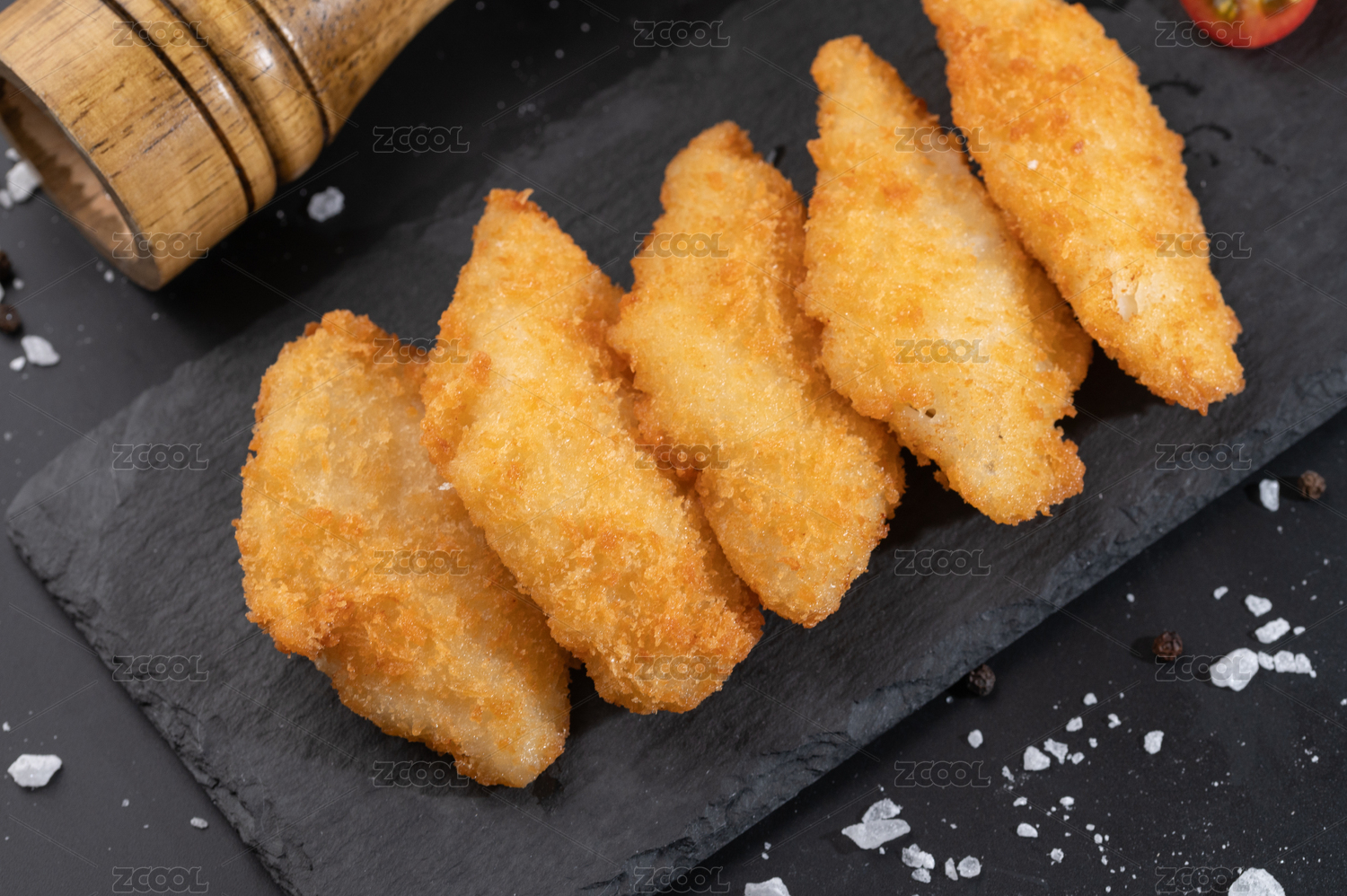 黑色背景上的炸鱈魚排