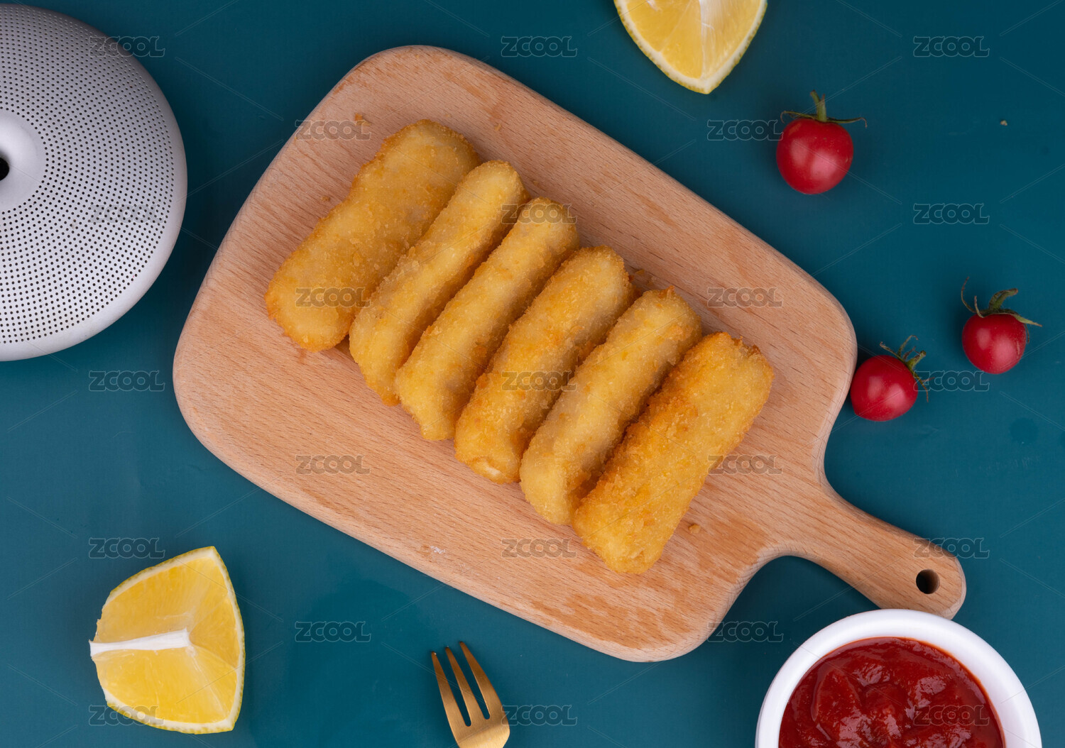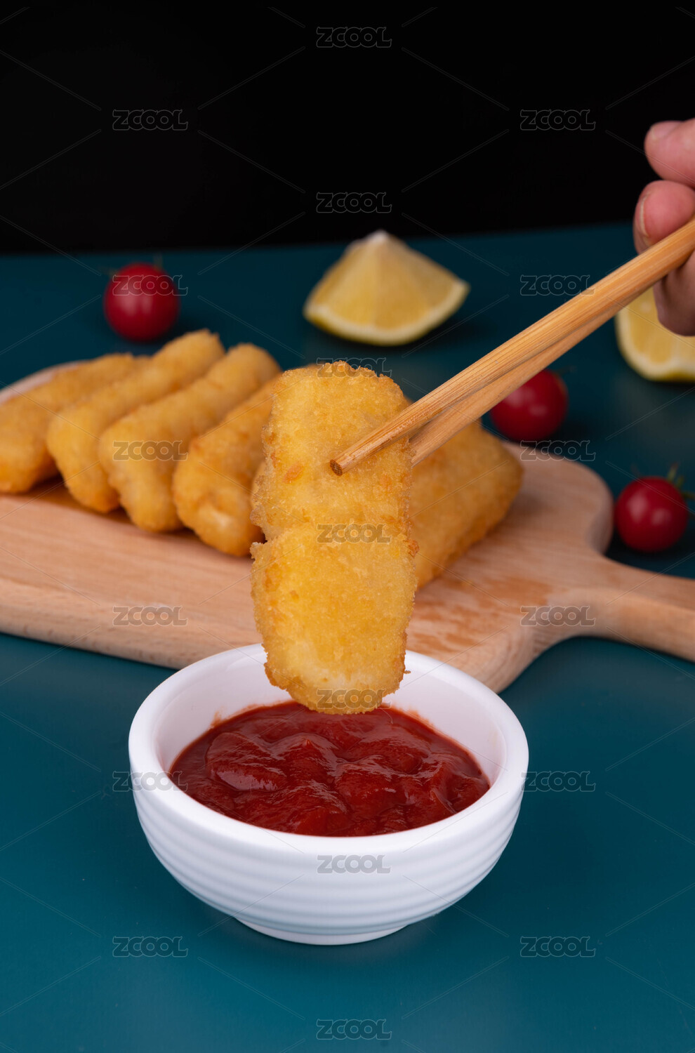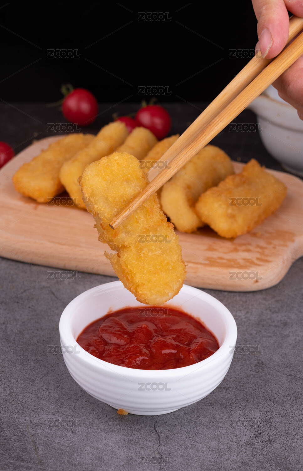 油炸鱈魚排蘸蕃茄醬