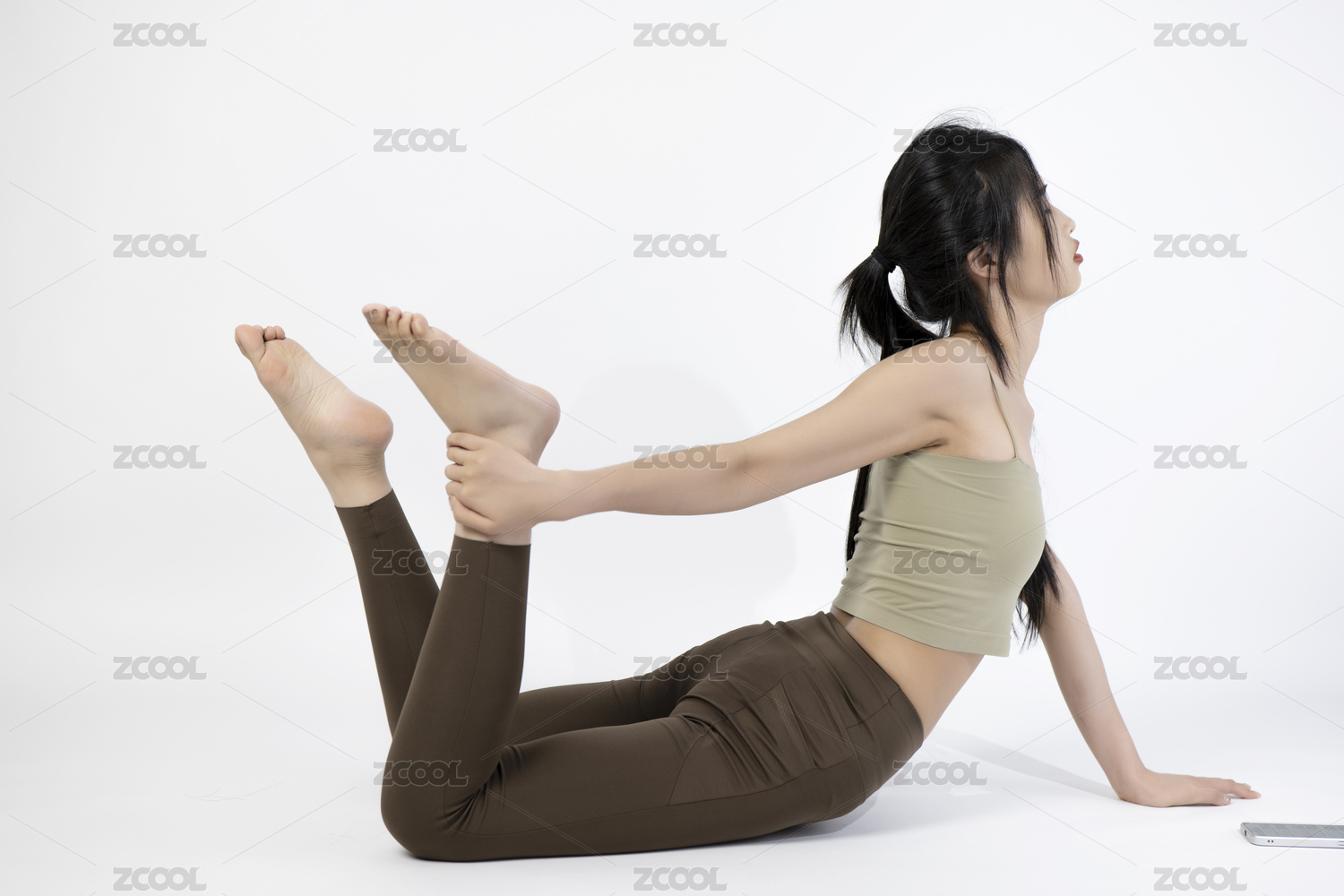 側面視角下練腰的東方女子