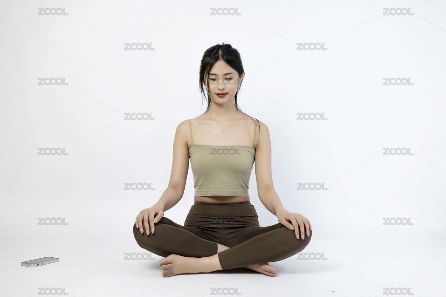 正面視角下坐瑜伽的東方女子