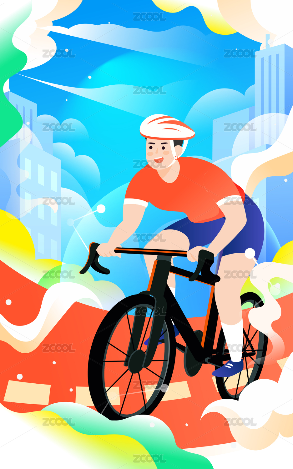 世界騎行日人物騎自行車健身運動出行插畫
