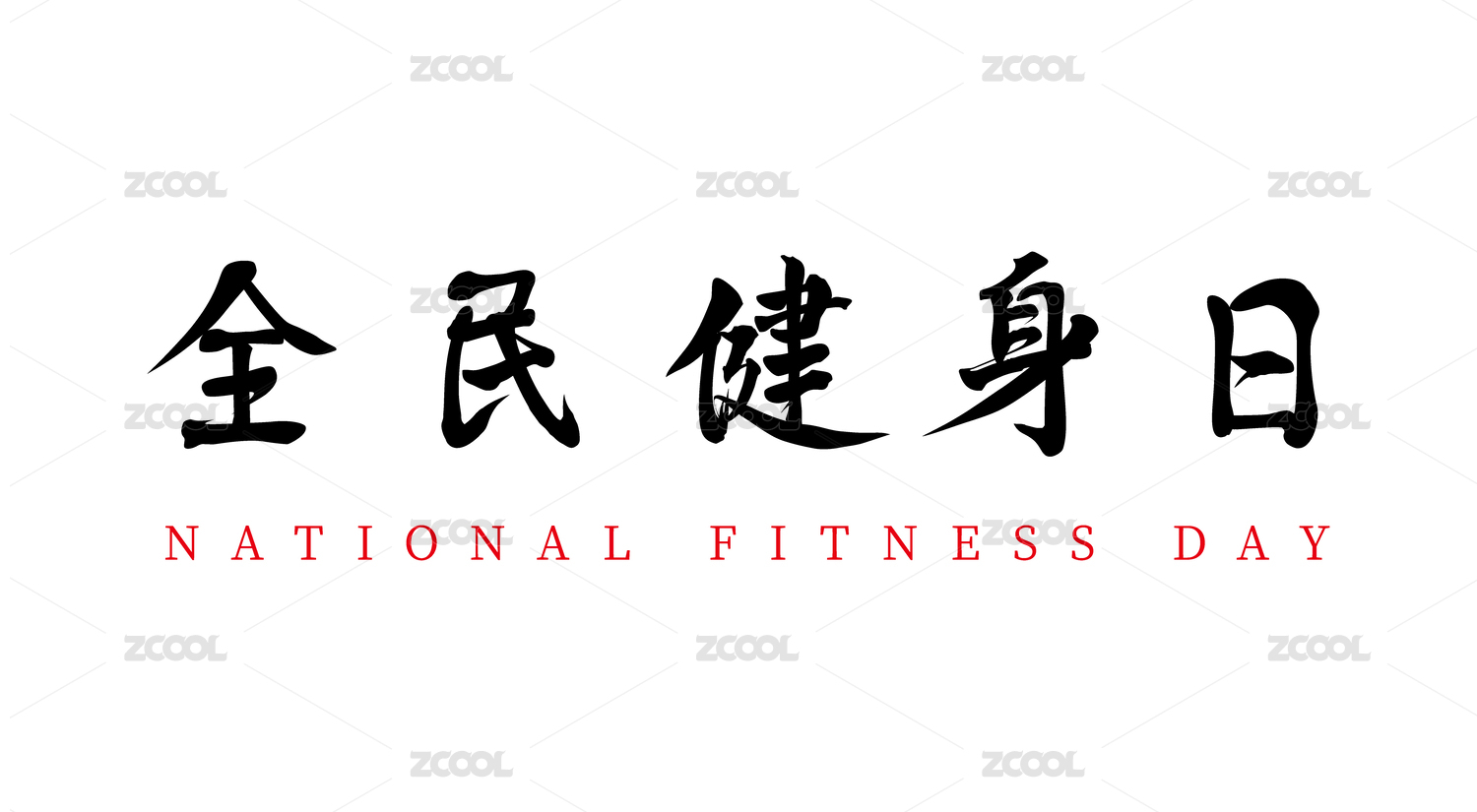 矢量中國毛筆書法字全民健身日