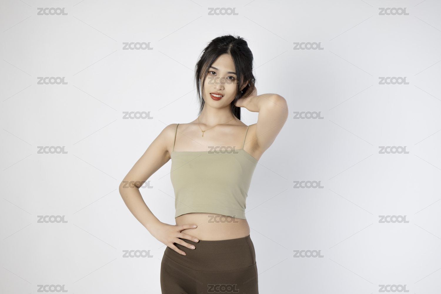 健身的東方女子正面視角