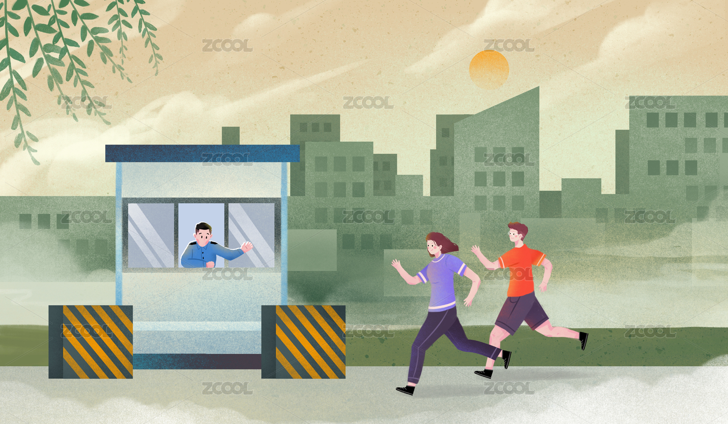 全民健身日正在小區(qū)內進行熱身跑步的兩個人