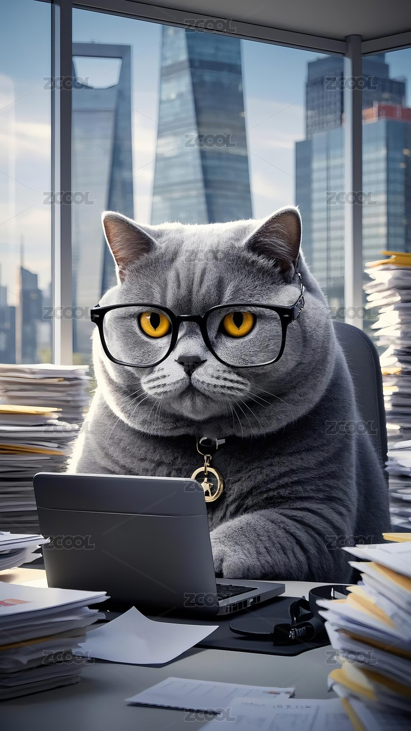 辦公室內(nèi)工作的藍(lán)貓