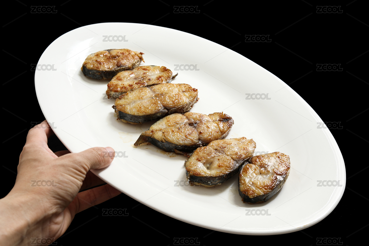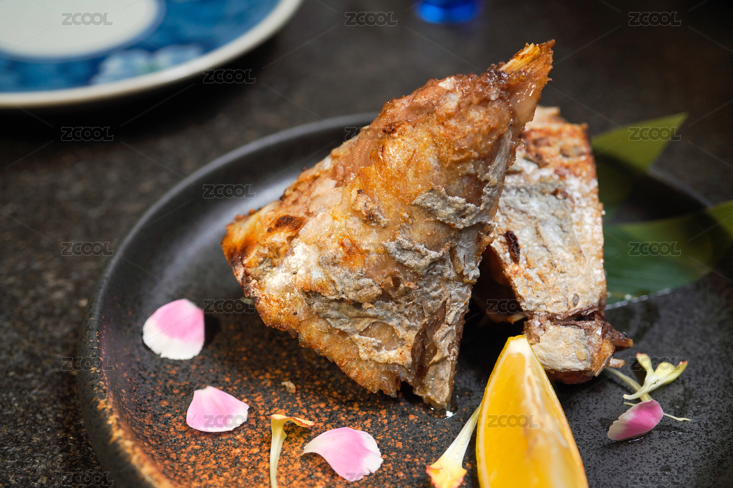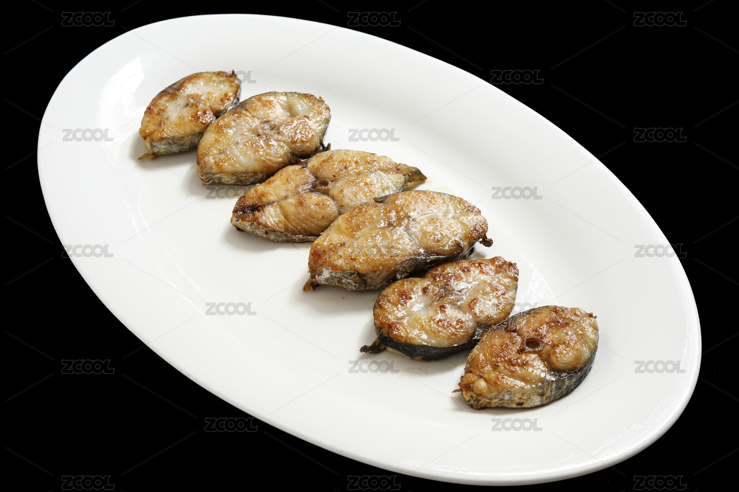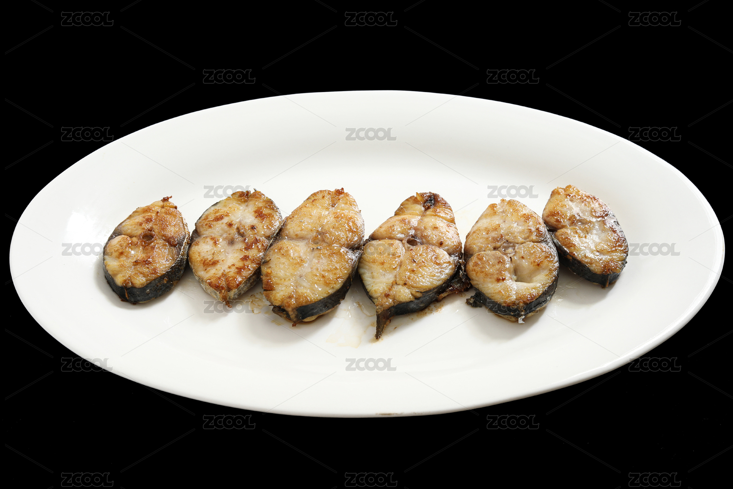 黑色背景上的一盤子海鮮美食年夜飯香煎魚塊