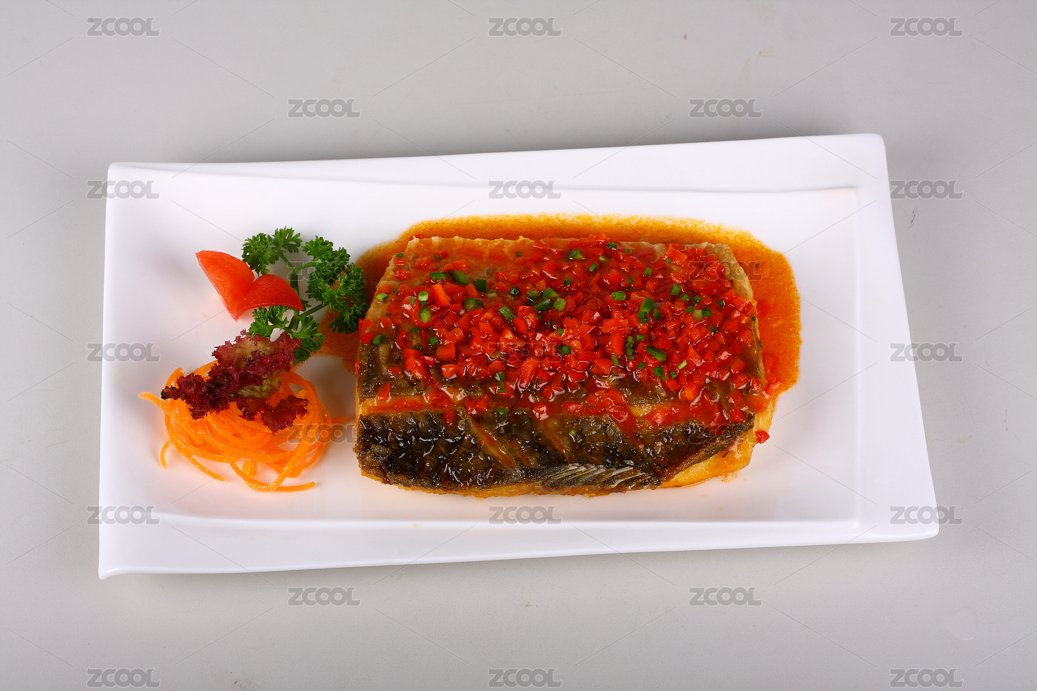 西餐煎魚塊配蔬菜