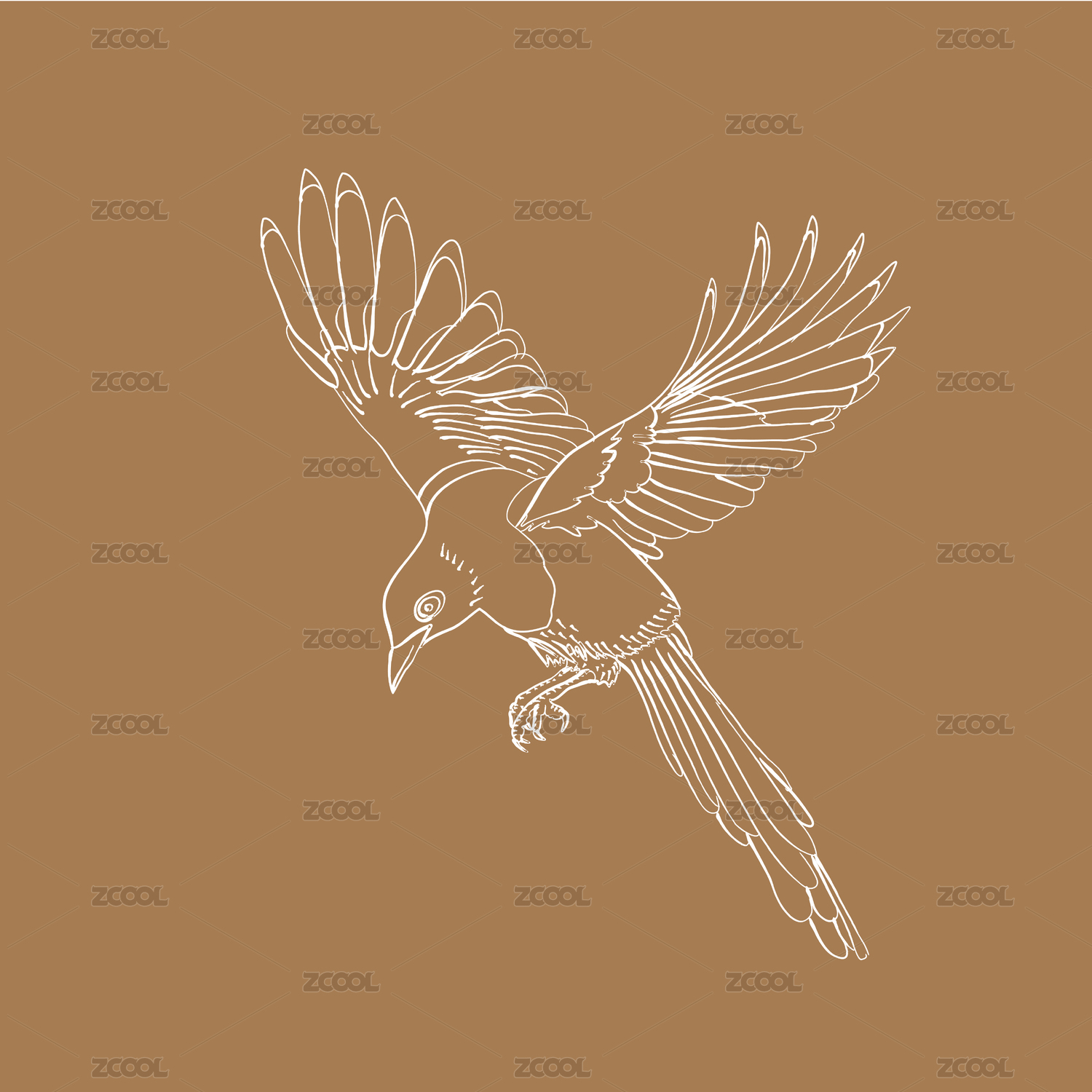 國潮七夕飛鳥喜鵲工筆白描矢量線稿插畫