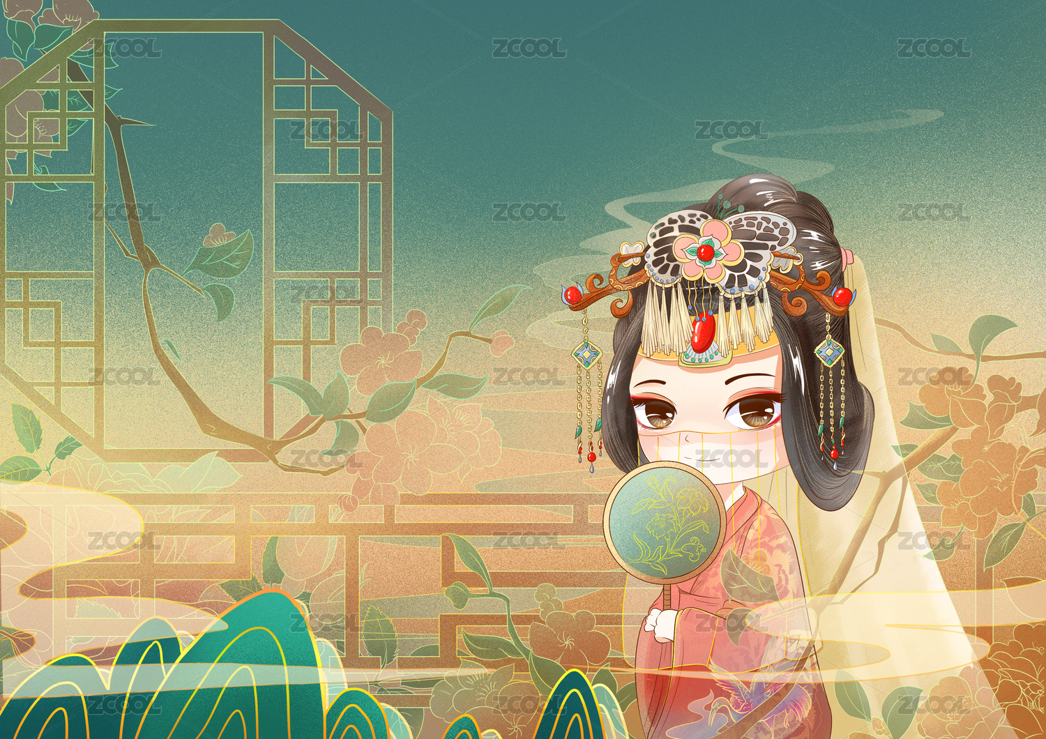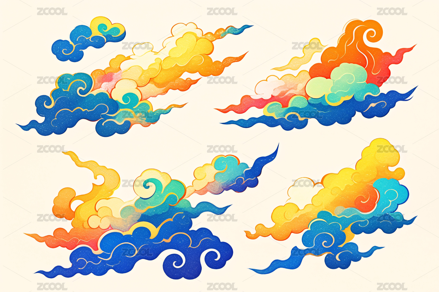 唯美古風國潮喜慶新年節(jié)慶祥云七夕插畫背景