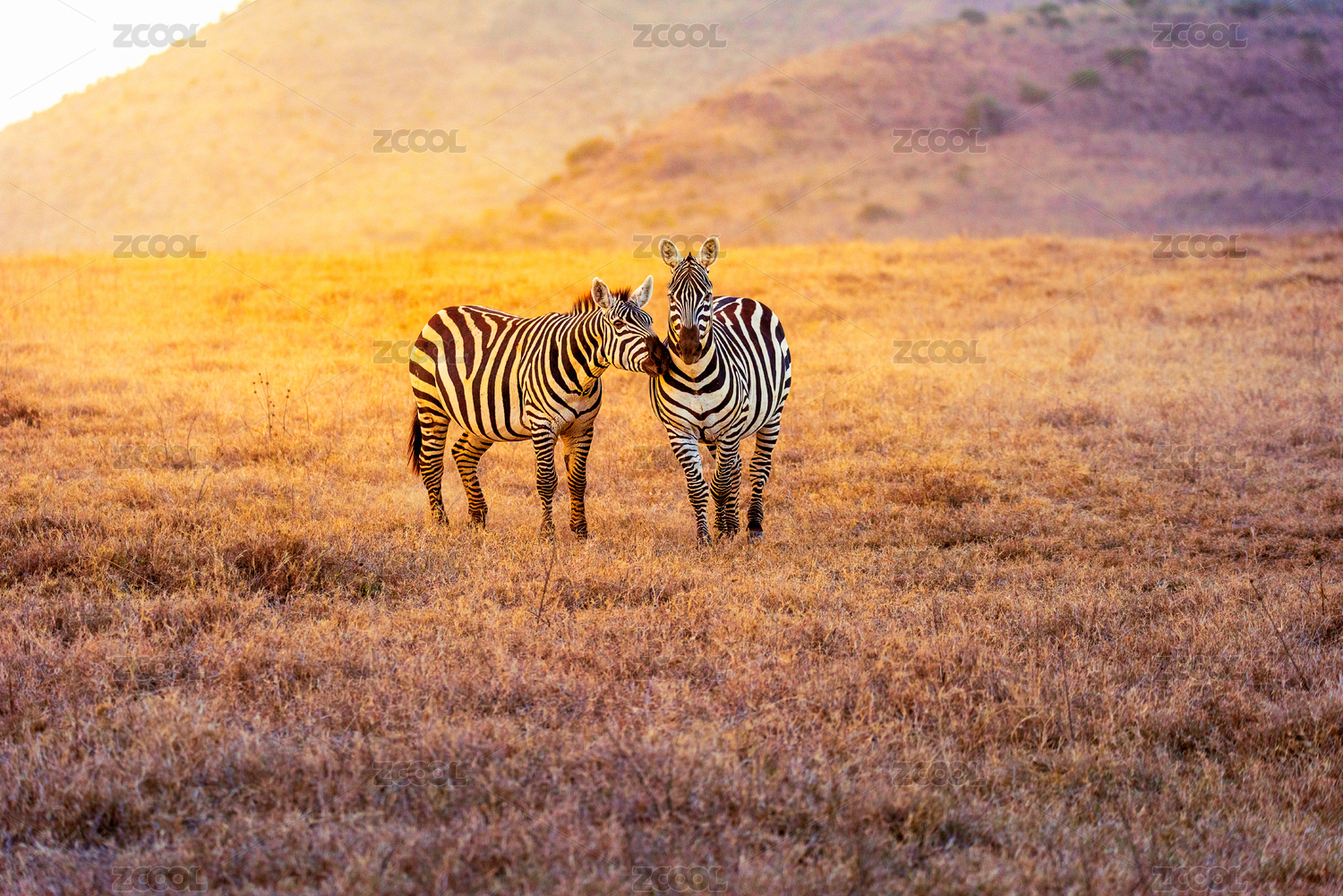 非洲的黃昏——兩只斑馬在夕陽中行走