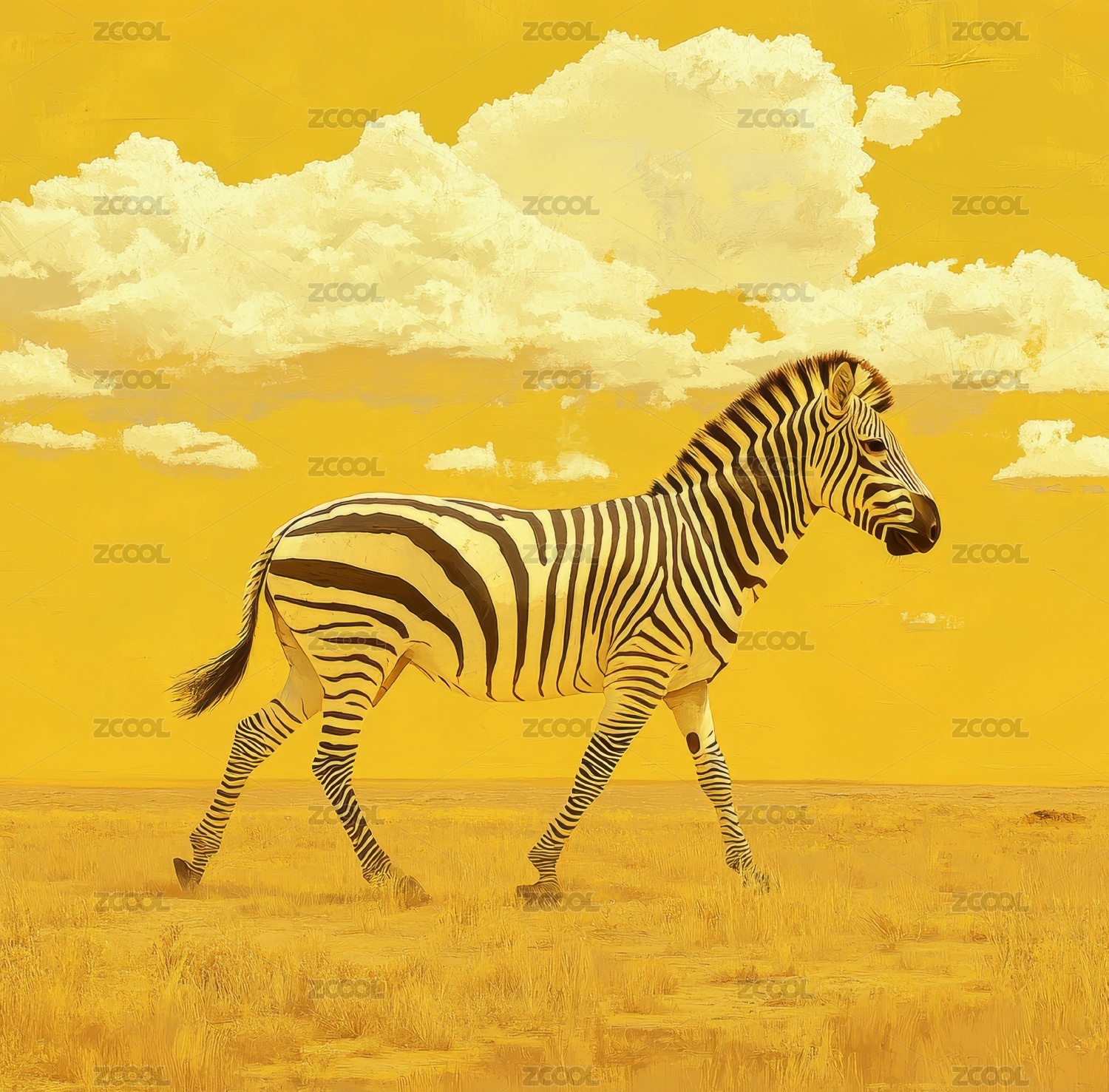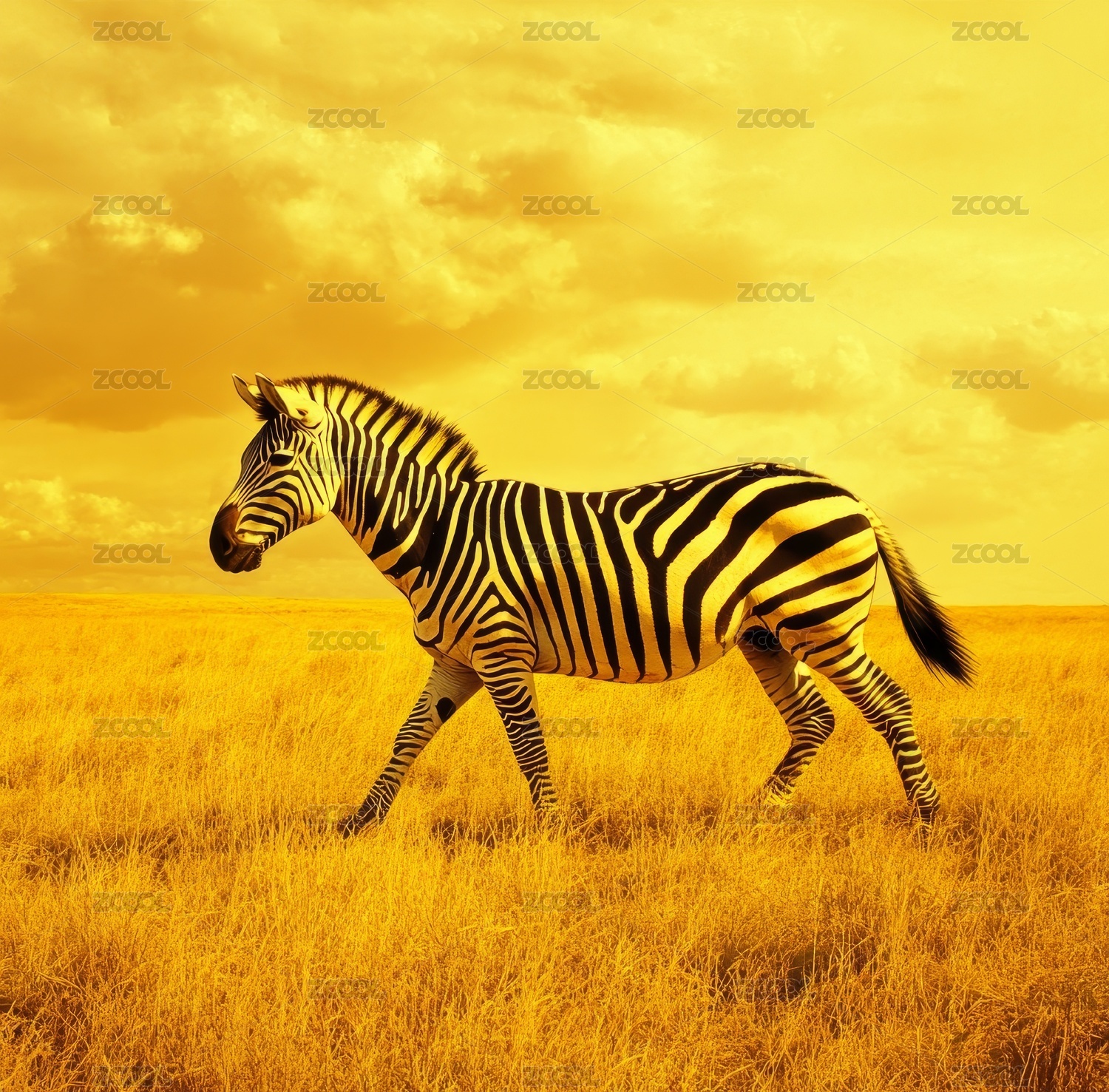獨自行走在非洲草原上的細(xì)紋斑馬